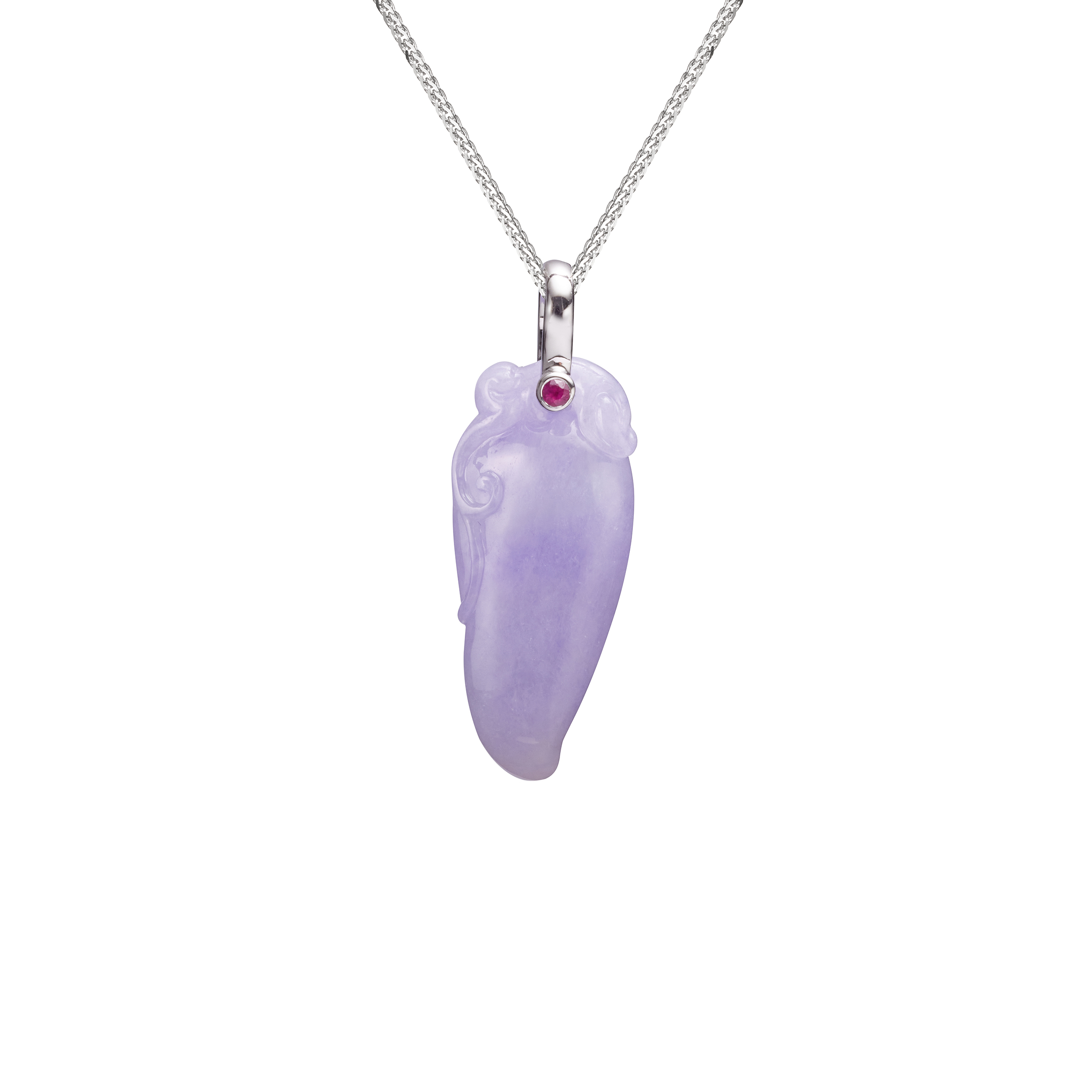 含藏著富貴、鴻運、交情與幸福的「辣椒」主題配飾,透過不同翡翠色澤的詮釋,呈現出風格各異的美感特色,綠翠貴氣,白翡清靈,紫羅蘭浪漫,而紅翡嬌豔,美麗的玉色,滿蘊歡喜與祝福。