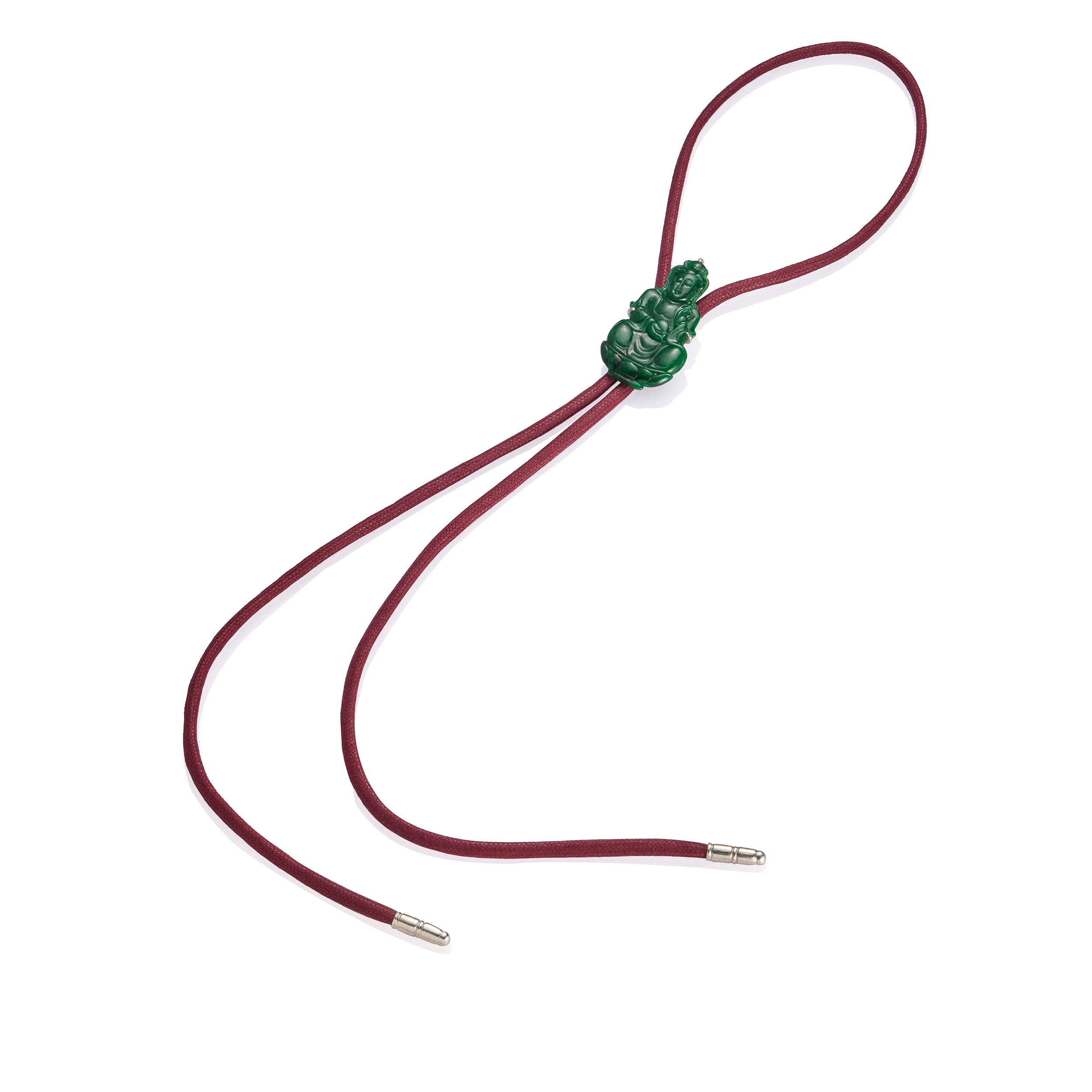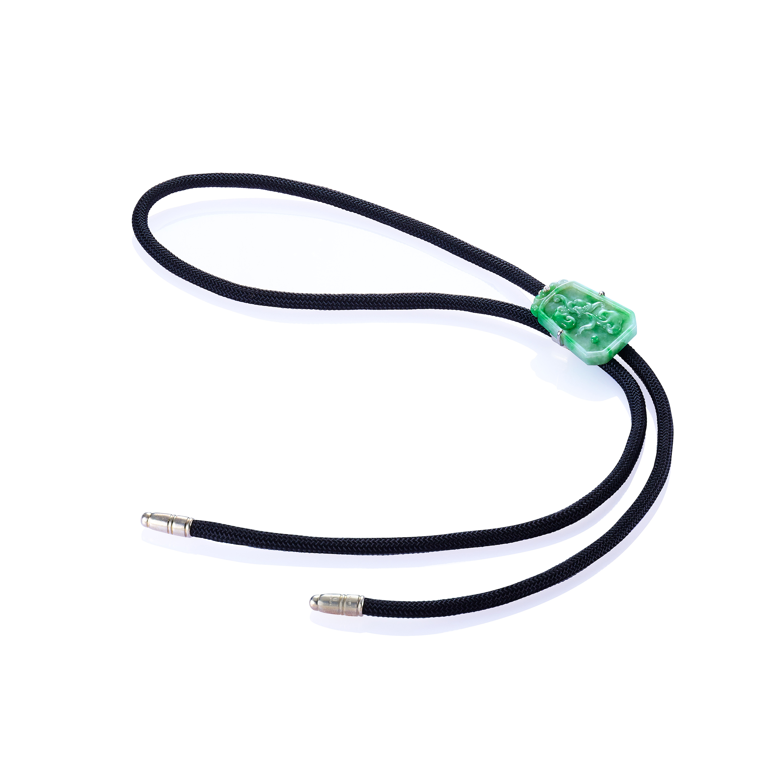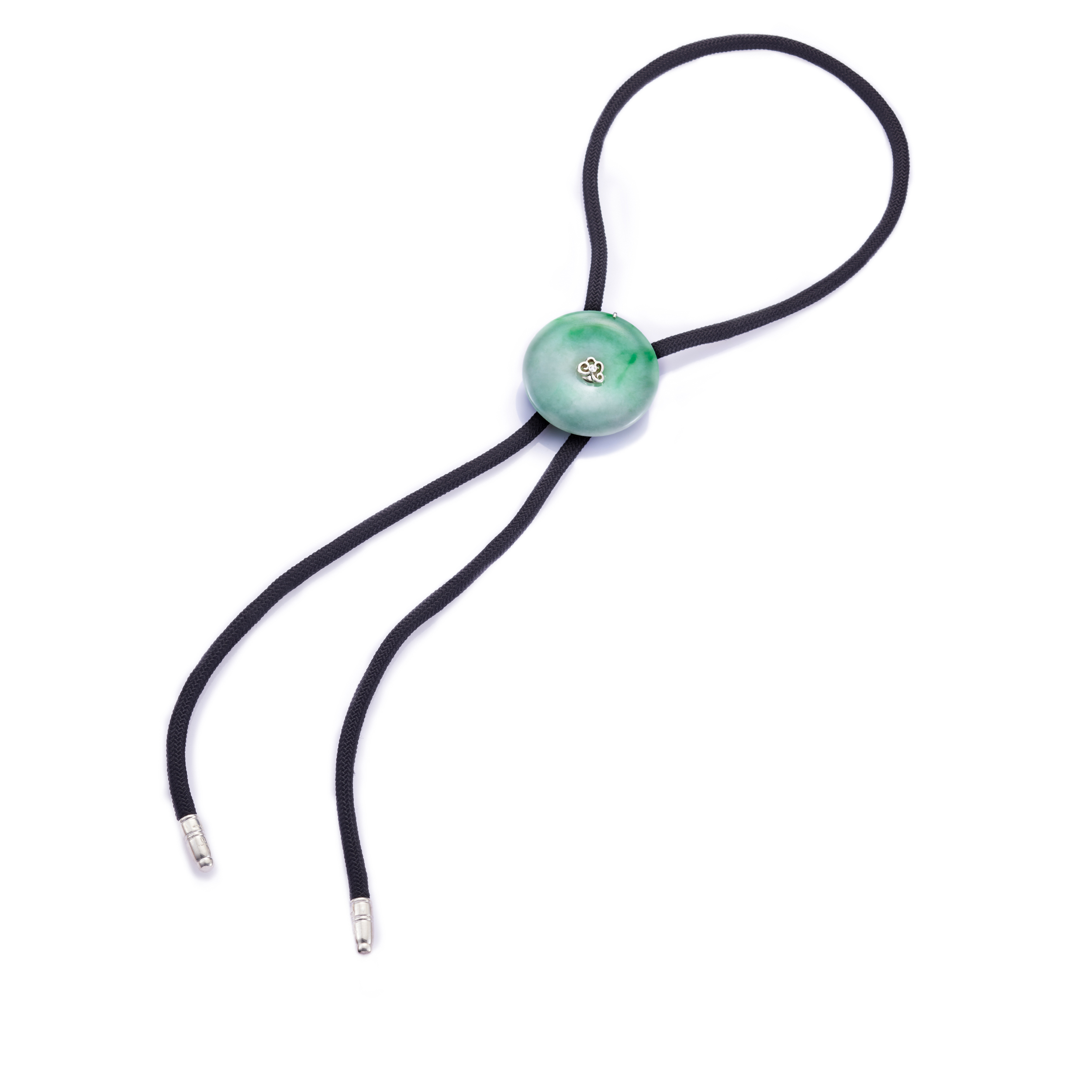 JADE TIE系列,是JADEGIA玉世家最新設計的時尚款式,它是以翡翠為主石的繩狀領帶。溫潤多采的翡翠,結合精湛的設計與雕作手藝,再搭配不同色澤花樣的繩飾,展現出繩式領結的全新風貌。