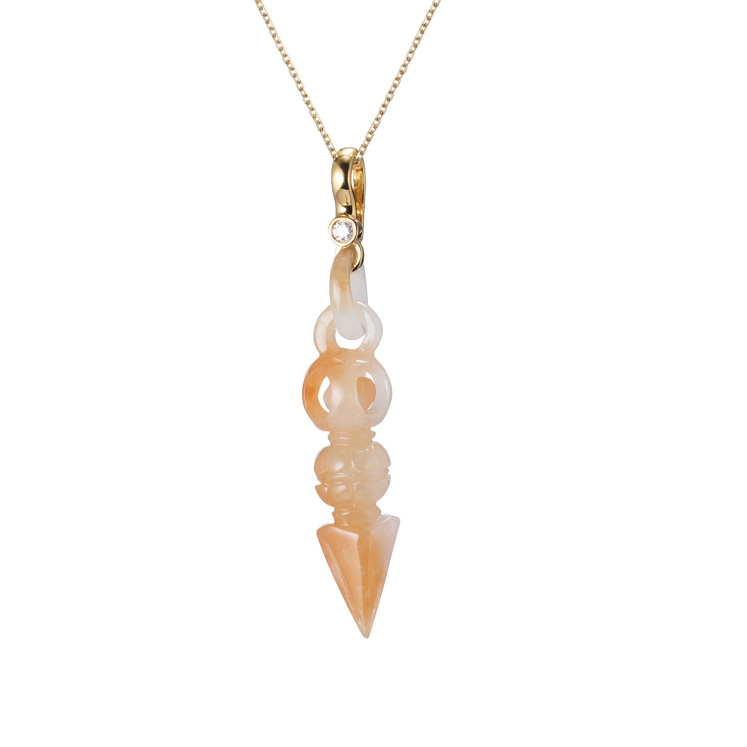 JADEGIA玉世家【神行智慧】系列,以佛教法器為創意靈思,設計為墜飾與耳環,既具個性時尚之美,亦能展現魅力風格,溫潤的玉光,更含蘊了透亮的人文情懷。