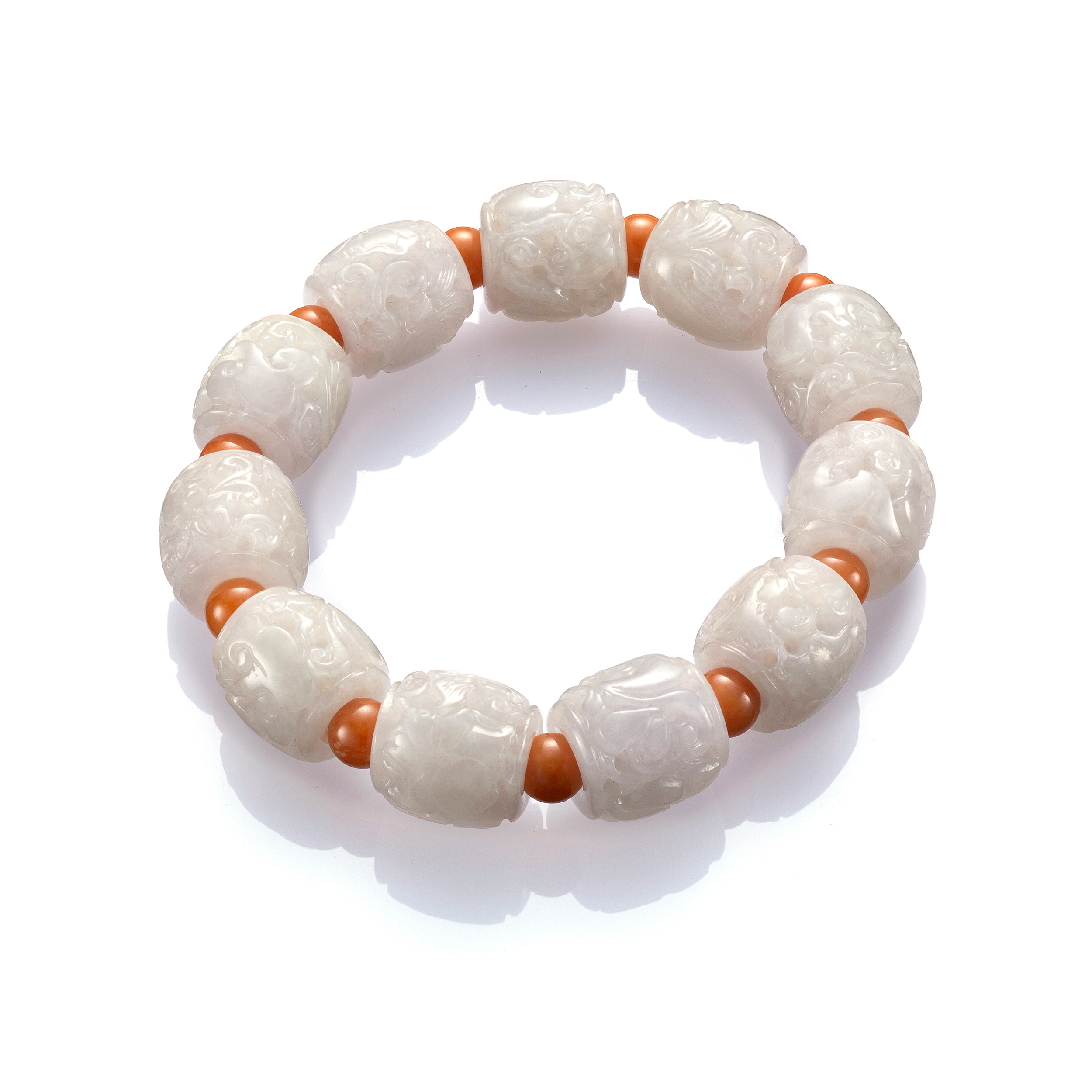 在飽滿的圓珠玉面施以如菱格紋的幾何主題,使得玉珠的切面彷彿人世間的萬千面目,既有層次,又富新意,盡顯時尚個性;而以吉祥寓意圖紋為主的手珠串,則以細膩的刀筆刻劃各式祥瑞紋飾,捎來了滿盈的喜氣與祝福。