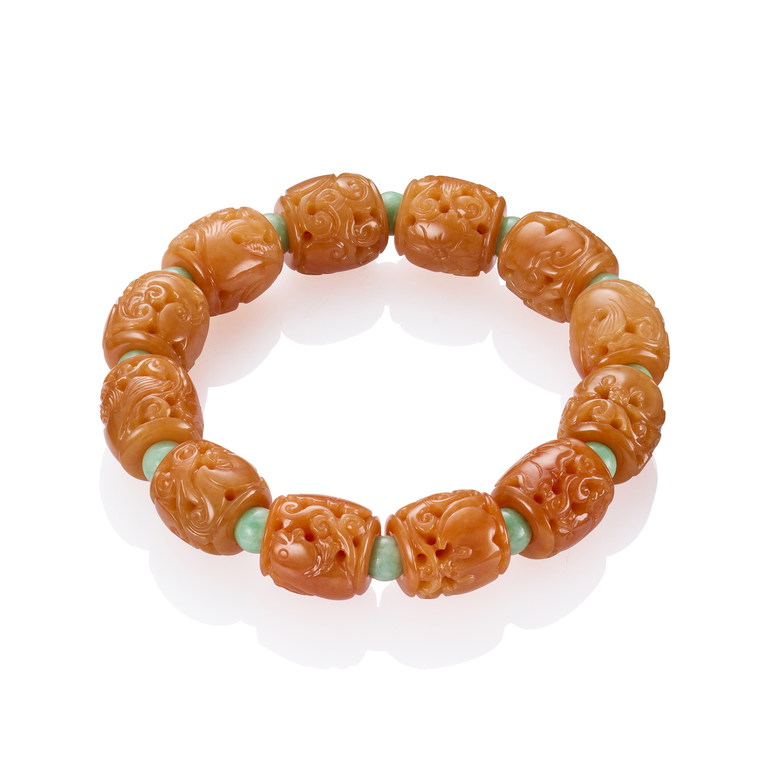 此類帶有雕琢工藝的手珠串,既可讓人欣賞到玉質之美,也可以細細品翫它們精湛細膩的玉作手藝;而所呈現的主題,或以幾何圖飾為主,或以吉祥紋樣為主,各有各的風韻滋味。