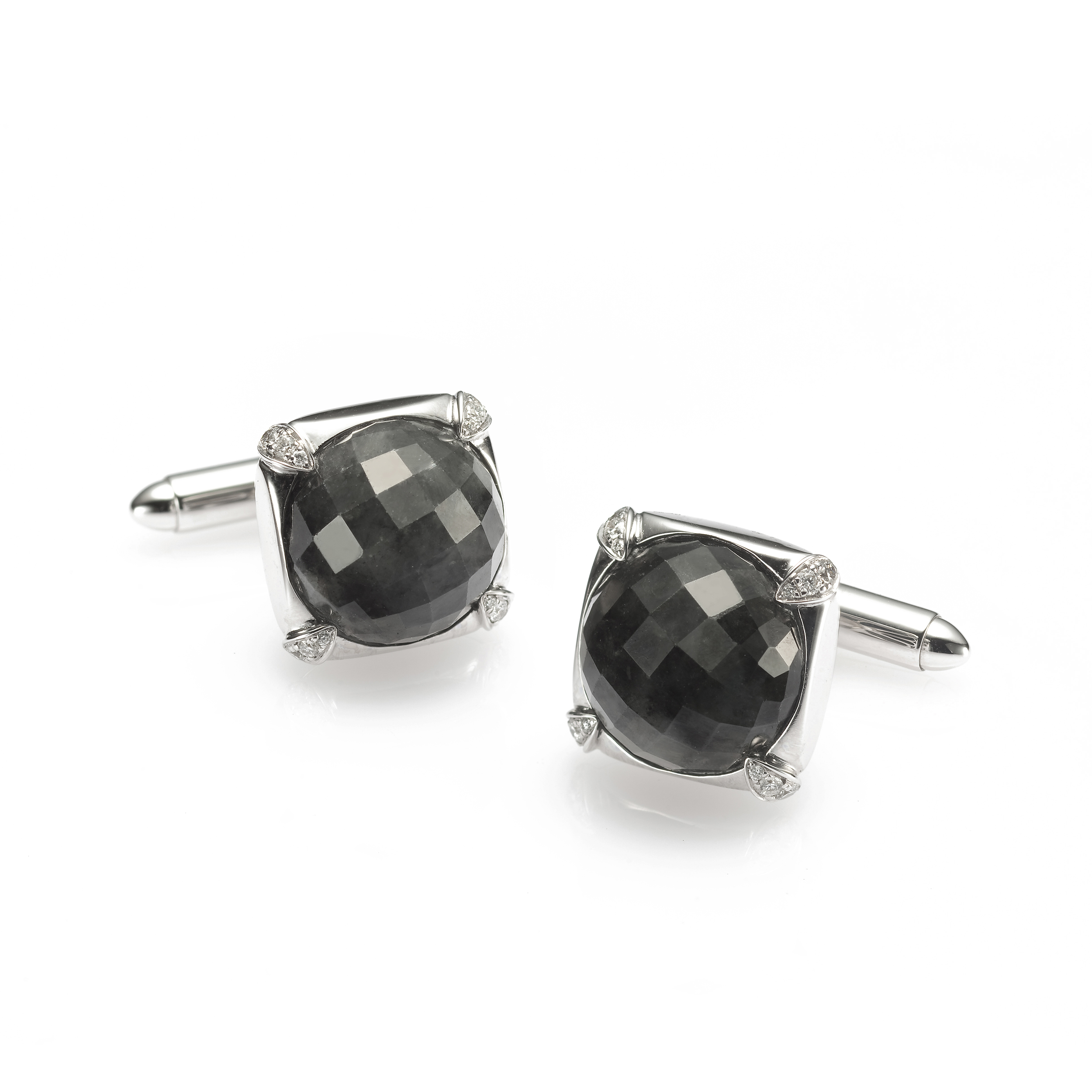 翡翠袖扣,設計簡潔,不露鋒芒,卻盡得眾人欽羨目光,尤具雅紳風度。深邃墨玉,珠面採菱形切割,極具個性;綠翠古錢造型,形制圓滿,捎來富貴祝福。幾何形制,是恆久的時尚風潮,再襯以鑽飾,典雅又貴氣。