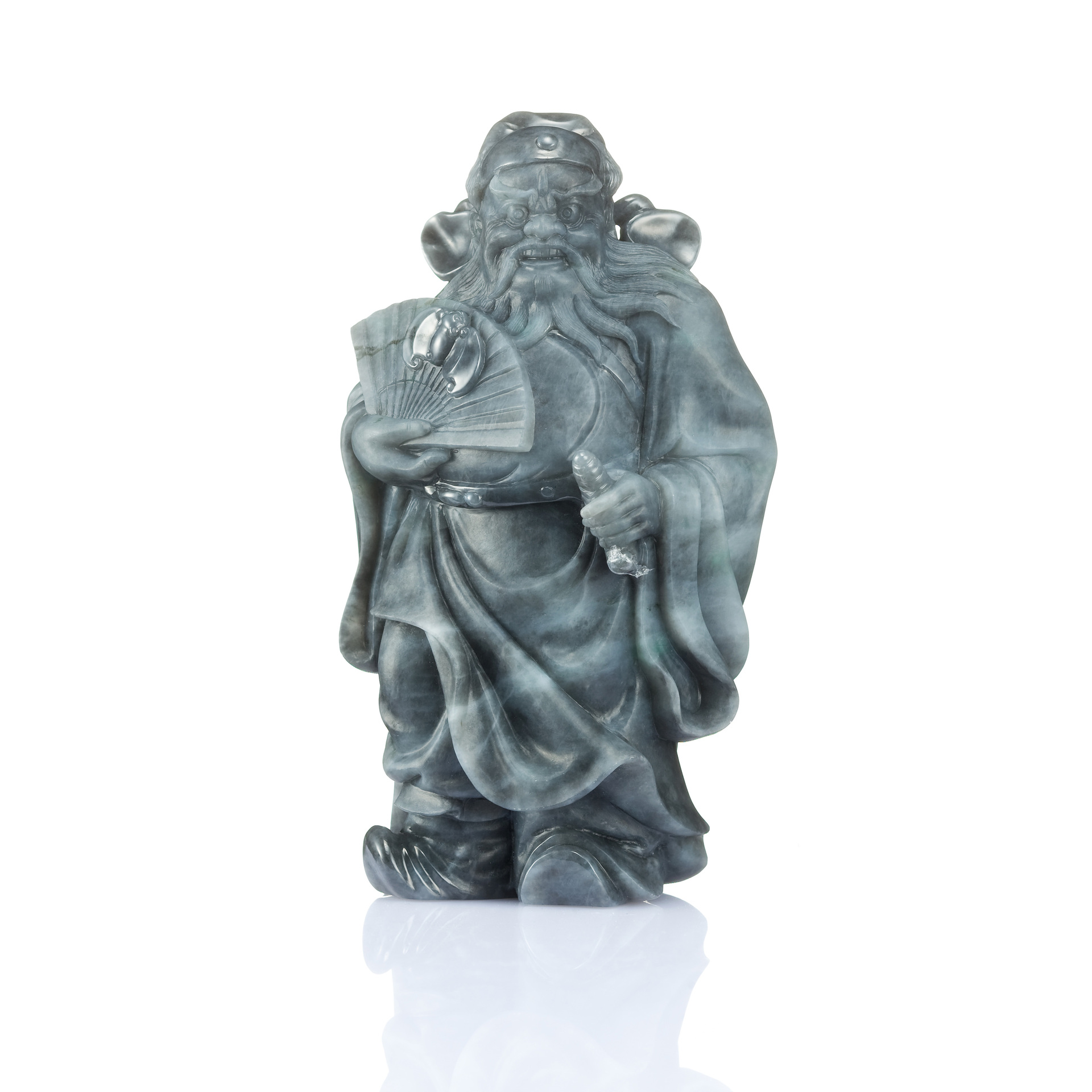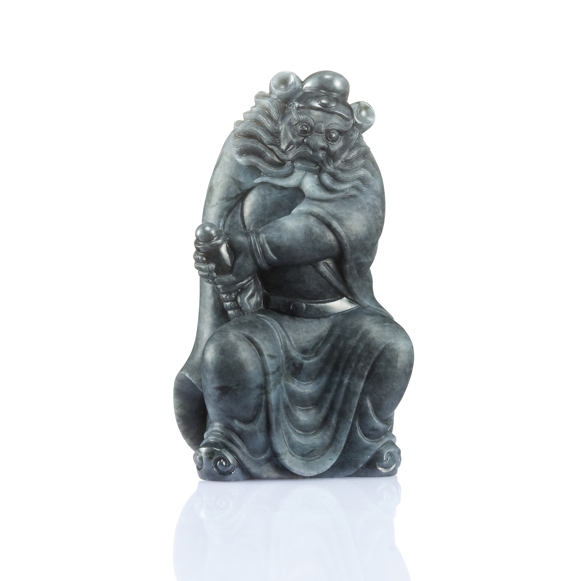 玉材的本質既是如此,那就隨其本然之性,賦予它獨有的面目。 於是,作玉人的心底,浮現了幾幅經典的圖譜:悠長久遠的文化傳統裡,最能展現威儀智慧、凜然正義的形象者,便是鍾馗、關公、羅漢等等,而靈獸之類者,則以鎮煞、驅邪的貔貅神獸,最是佼佼。