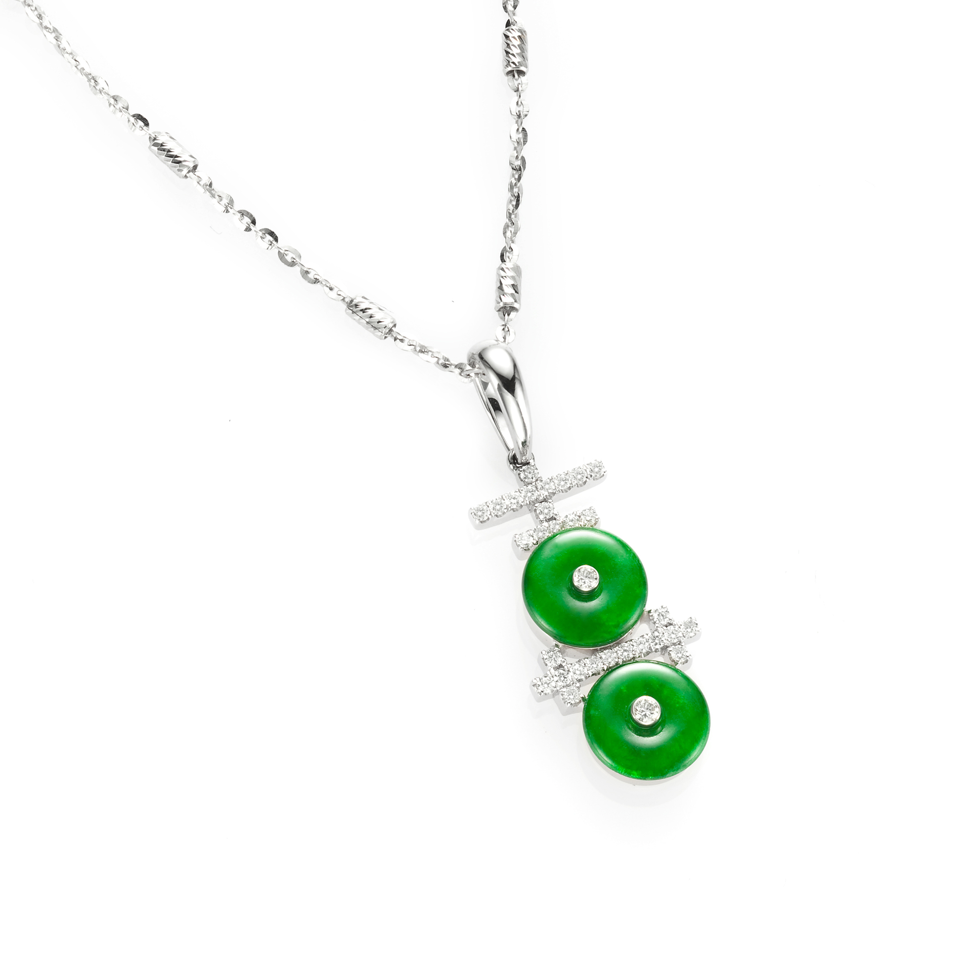 將文字的形與意化入翡翠珠寶的設計之中,尤能具現東方文化美學的獨特韻致。漢字的文字結構,最能表現空間中的對稱、均衡之美,而文字的意義所捎來的吉祥祝願,更增添了福至心靈的喜悅。形式的美好,意象的良善,兩相結合,遂成為喜氣成雙的珍貴信物。