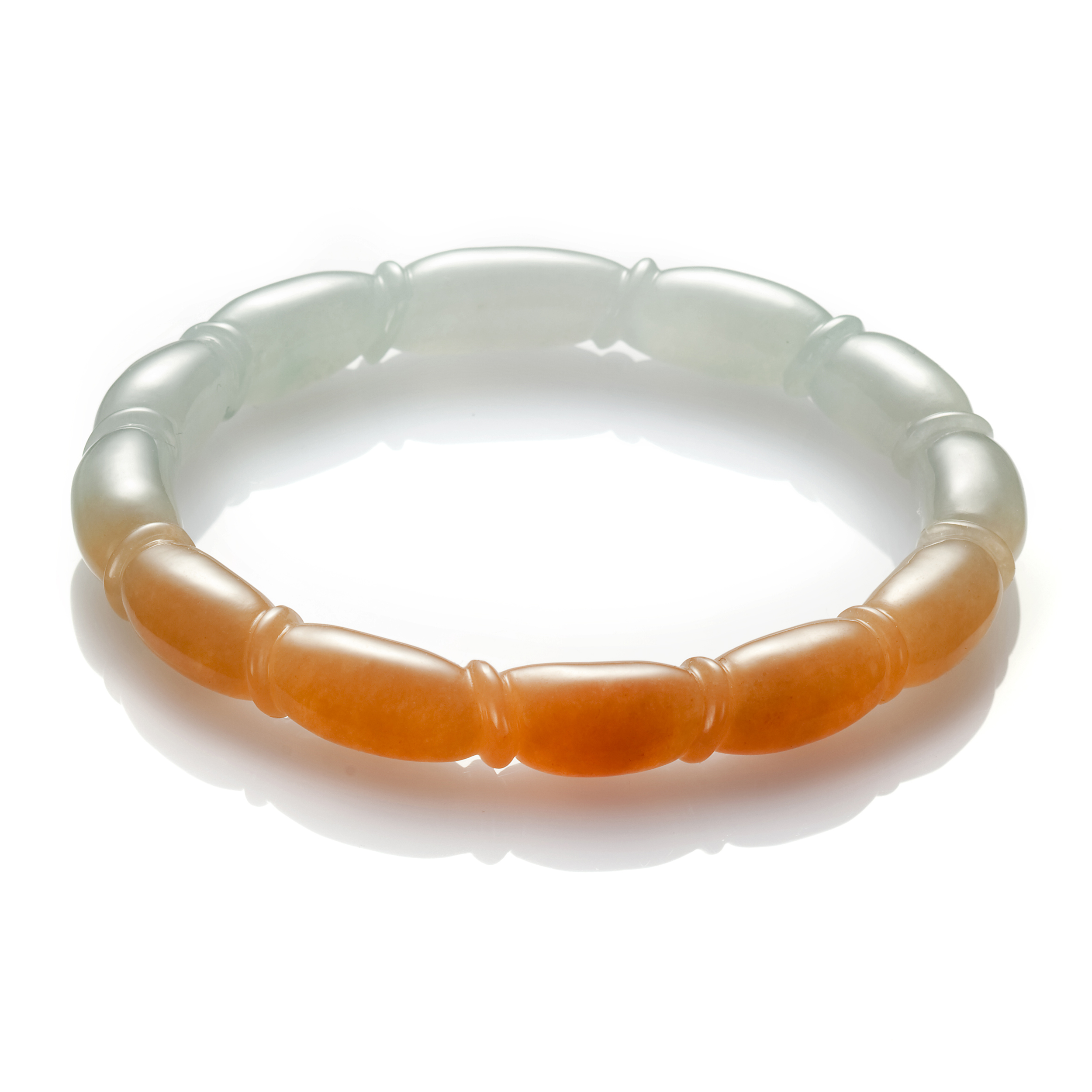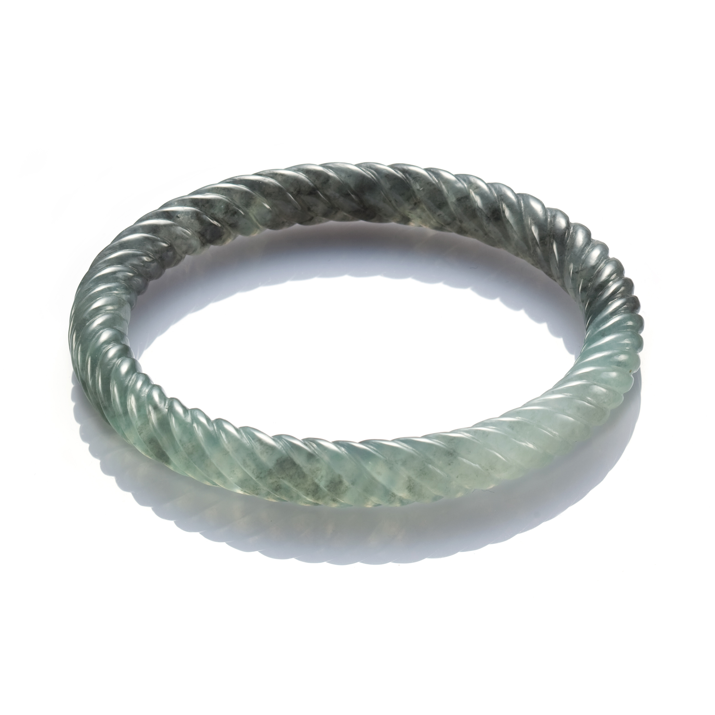 以玉鐲的鐲面觀之,最常見的,即是平滑光素的鐲面,這也是最經典的造型。除此之外,有些鐲面,琢以菱紋,原本平滑的鐲面,化作細細小小的幾何圖樣,別具個性;或巧琢為竹節,有古典風情,透散靜謐內涵的氣韻;或琢為麻花狀,尤能表現工藝之美;而在寬版式的鐲面上,則有更豐富的刀筆設計,祥瑞圖紋,刻劃其間,寓旨明確,含蘊美好的祝願。