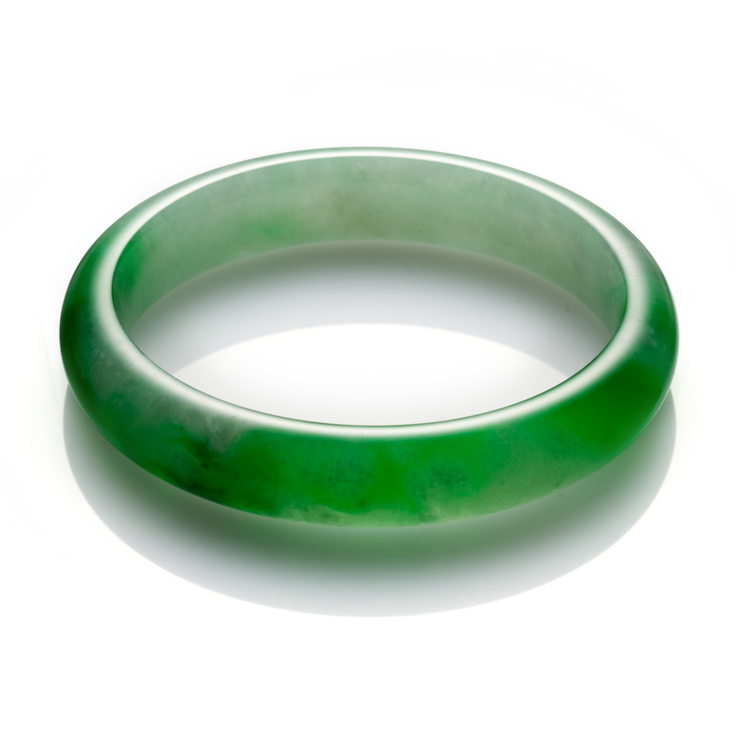 翡翠玉鐲之所以深受青睞,一方面,是它的「傳承」意義,在家族的傳家信物中,幾乎都少不了玉鐲,尤其是母親與女兒之間,一只鐲子,寄託著親緣間深濃的記憶和情感;另一方面,由於玉文化的影響,人們認為,配戴玉鐲,可以消災擋厄,招來祥和之氣,而且,鐲的造型,總是圓圓滿滿的,是最能表現出人間幸福的代表物。