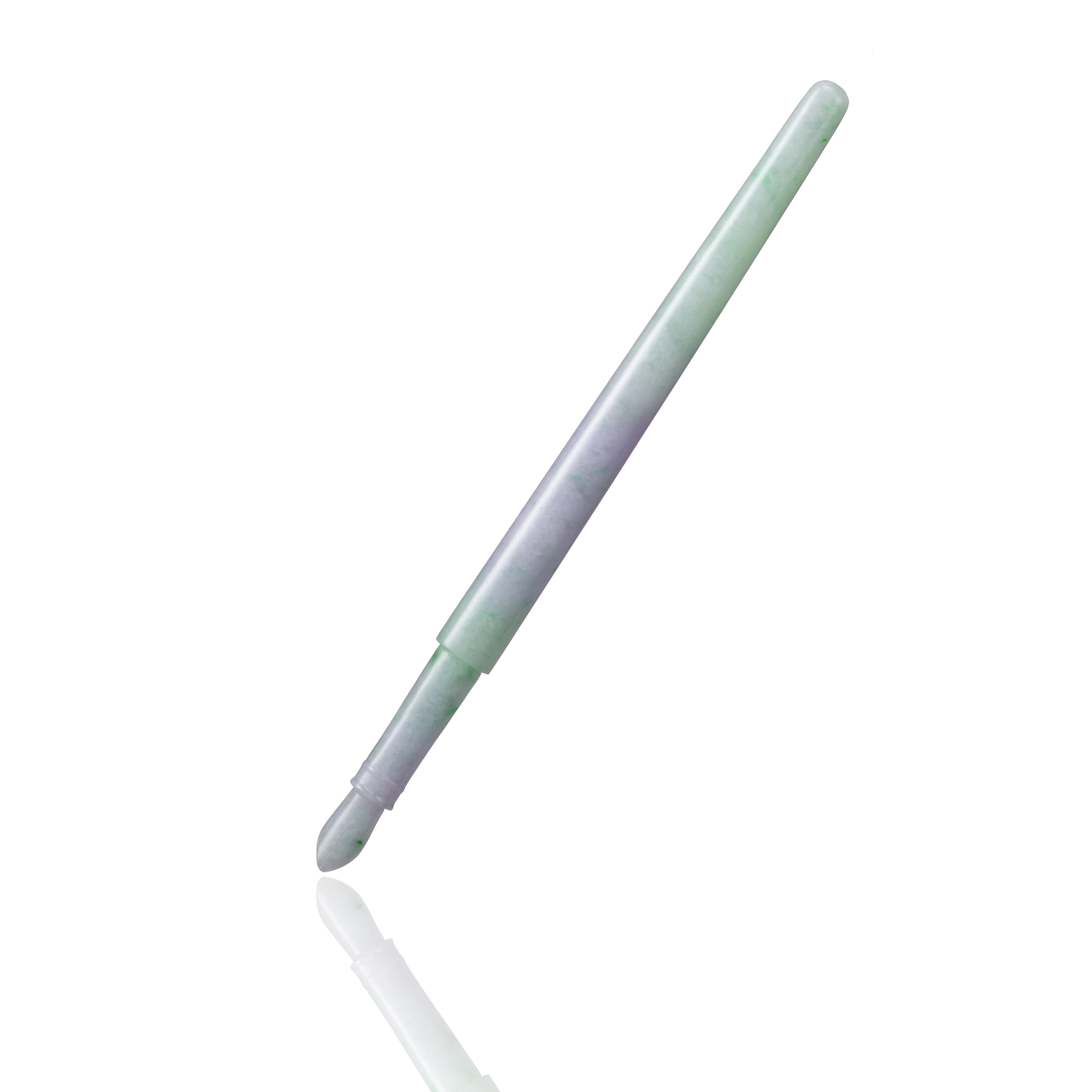今以溫潤翡翠琢製為筆,翡翠本身的人文意蘊,即與文采情思有若合符節之妙,而筆的形制,無論是毛筆、鋼筆或翡翠筆管,再再都象徵著泉湧靈思,在字字珠璣之中,得以展現貫世的智慧。