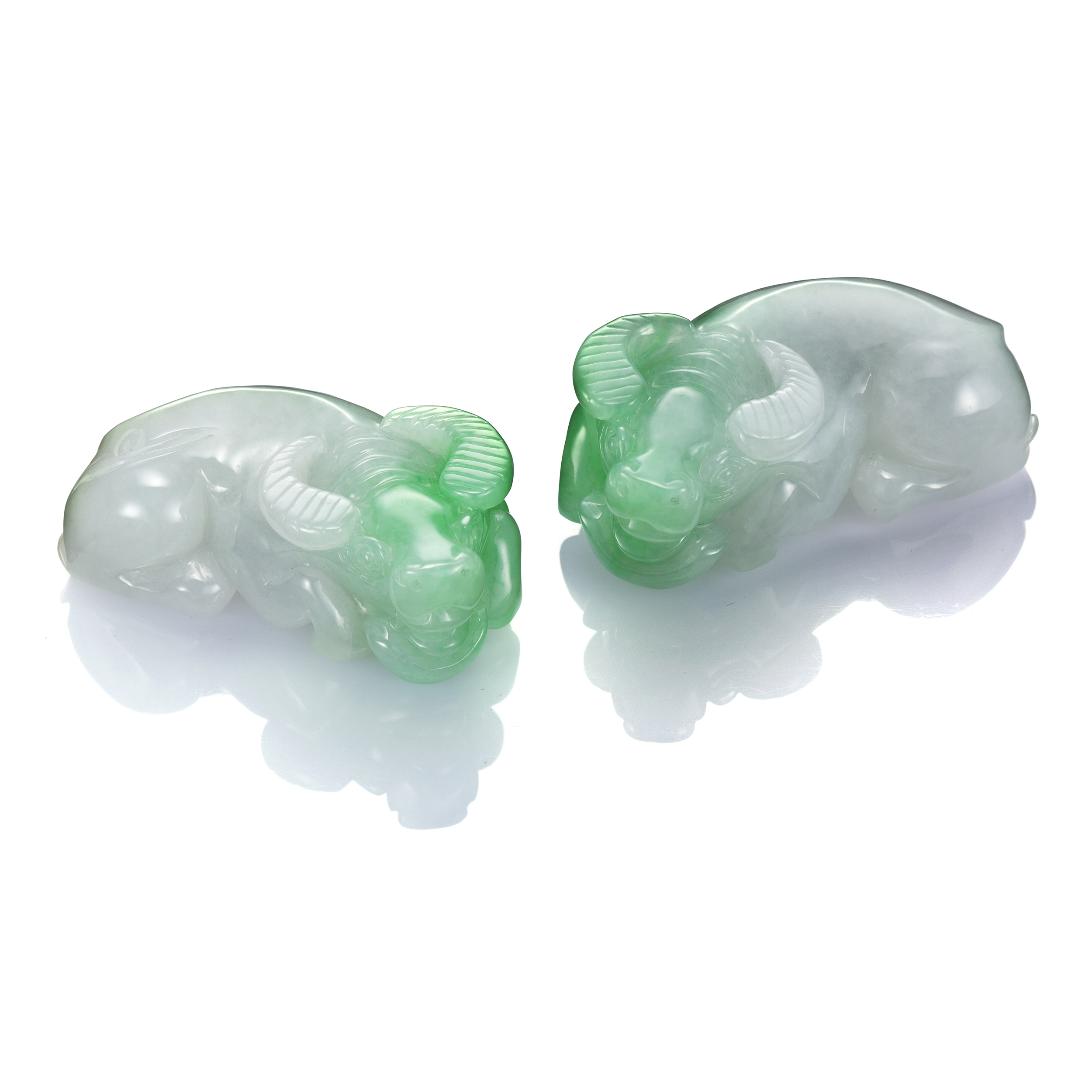 翡翠玉牛系列作品,以翡翠的溫潤堅韌詮釋牛族的沉穩形象,儒雅多彩的翠色,洗練流暢的刀筆,刻就出多樣的牛族造型,為新的一年揭開嶄新又豐收的新氣象。