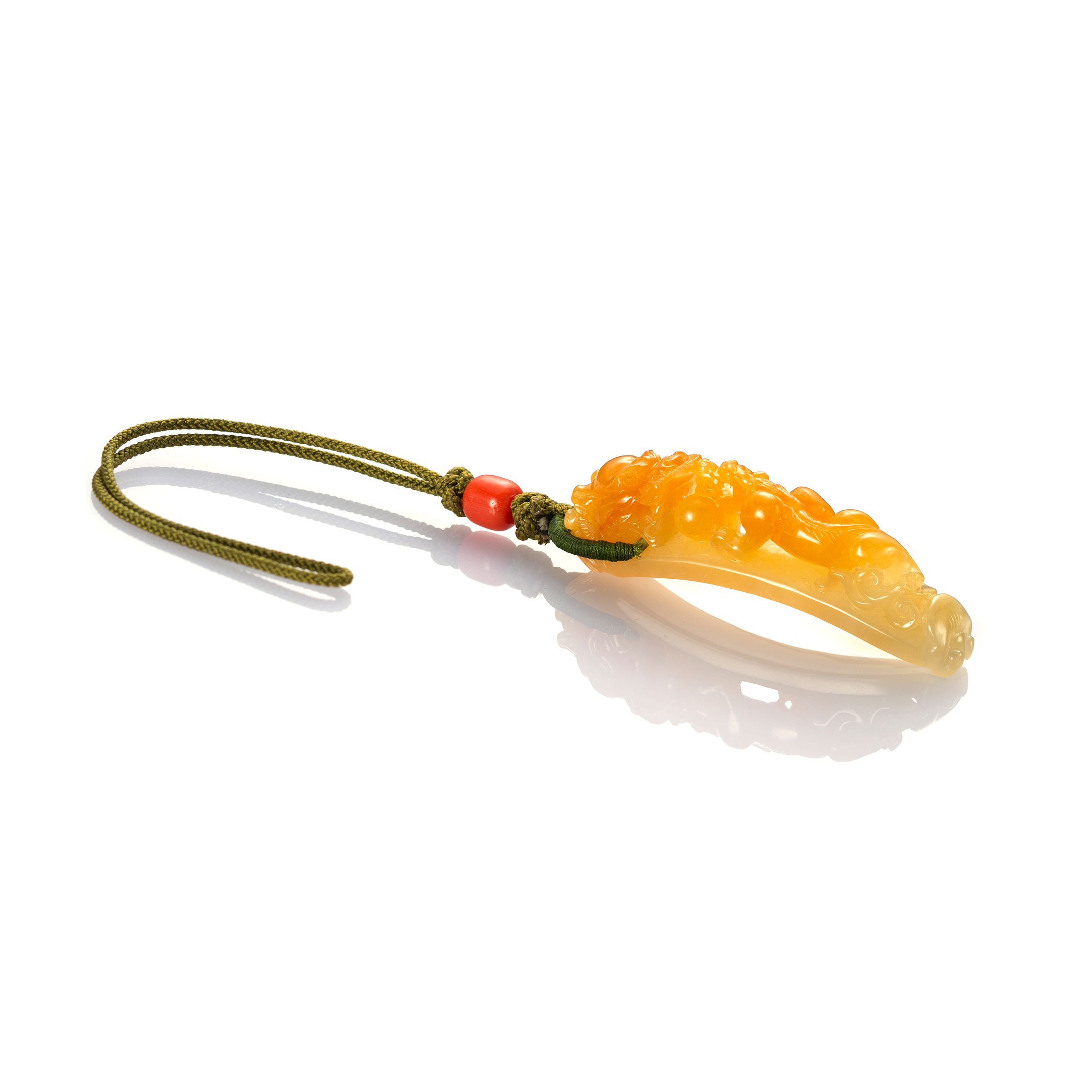 皮包掛件,既可以做為配飾,也可以時時放在手中把玩,感受玉質的溫潤質地,欣賞其間的色脈變化,同時,品味它的雕工細節──有些作品,以圓雕手法表現,撫翫之間,可以前後左右地體會它的形體趣味、線條流轉以及刻工的細膩處;有些作品,則融入了透雕技法,鏤空處,更添加了空間感;有些則是一面光素而另一面施以浮雕技藝,或深或淺地浮雕出祥瑞福壽的主題。