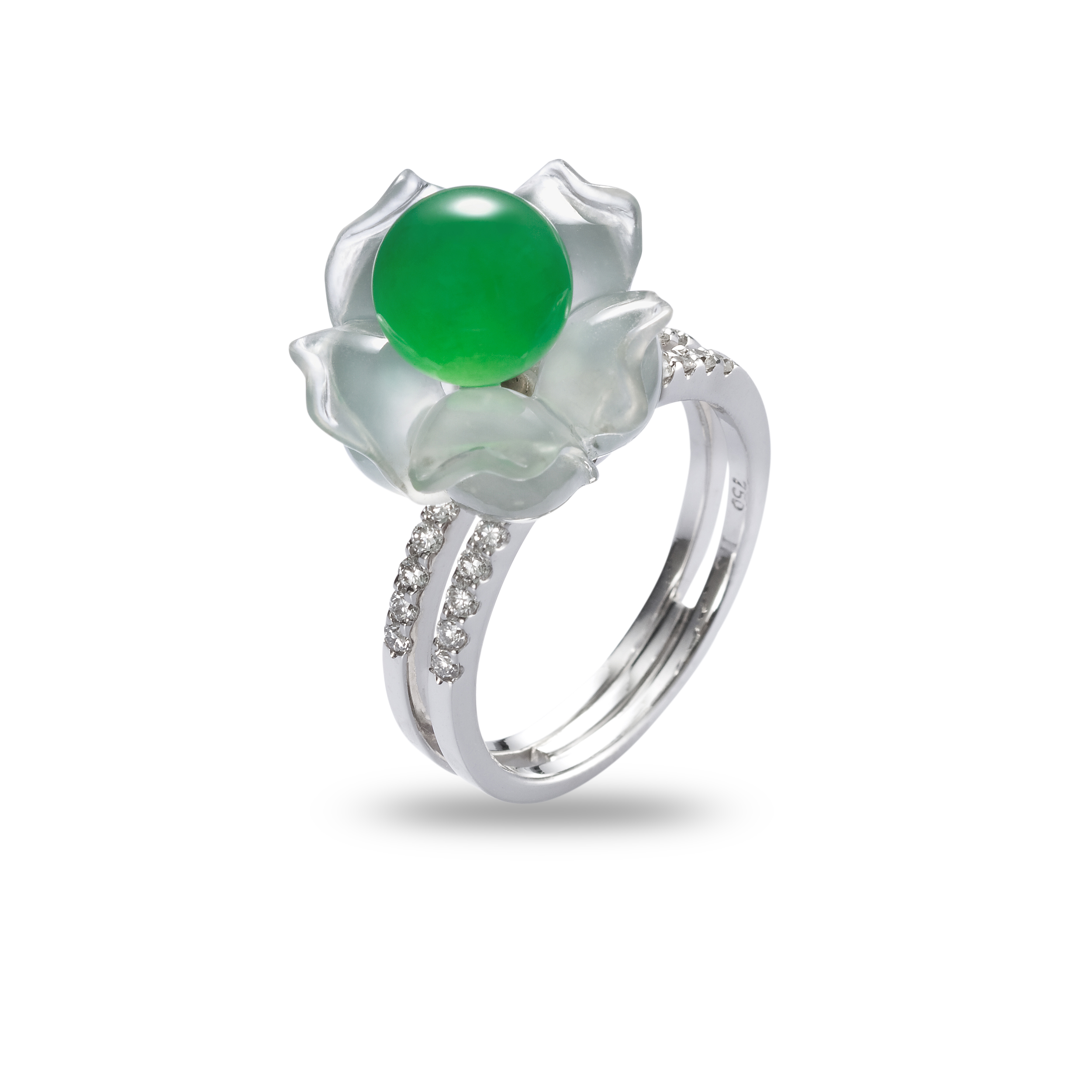 玉世家的【花約】與【日向】系列,即以翡翠為主石,設計為花形戒指,質地溫潤又堅韌的玉石,化作嬌婉柔媚的花朵,在指間,繽紛著璀璨的姿態。