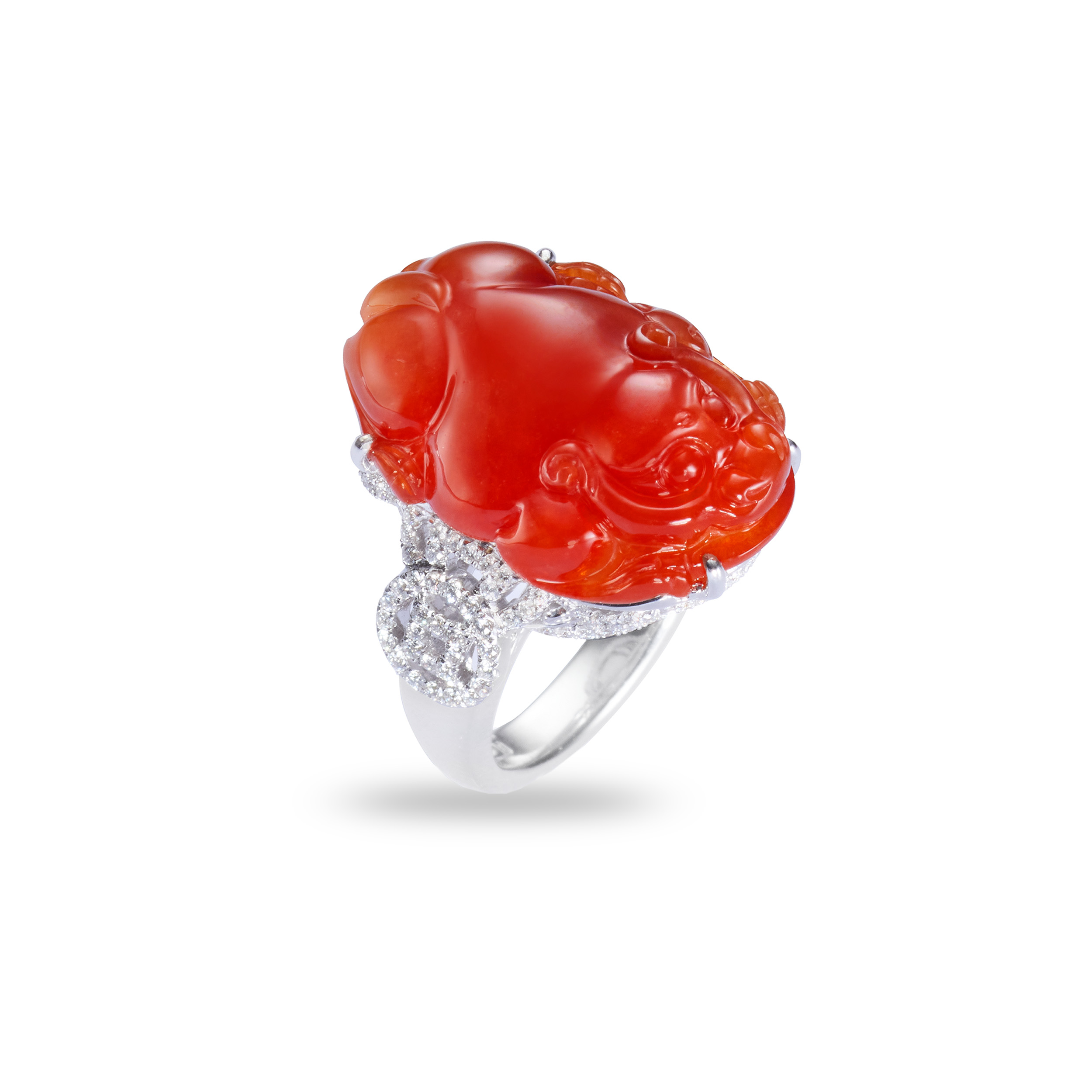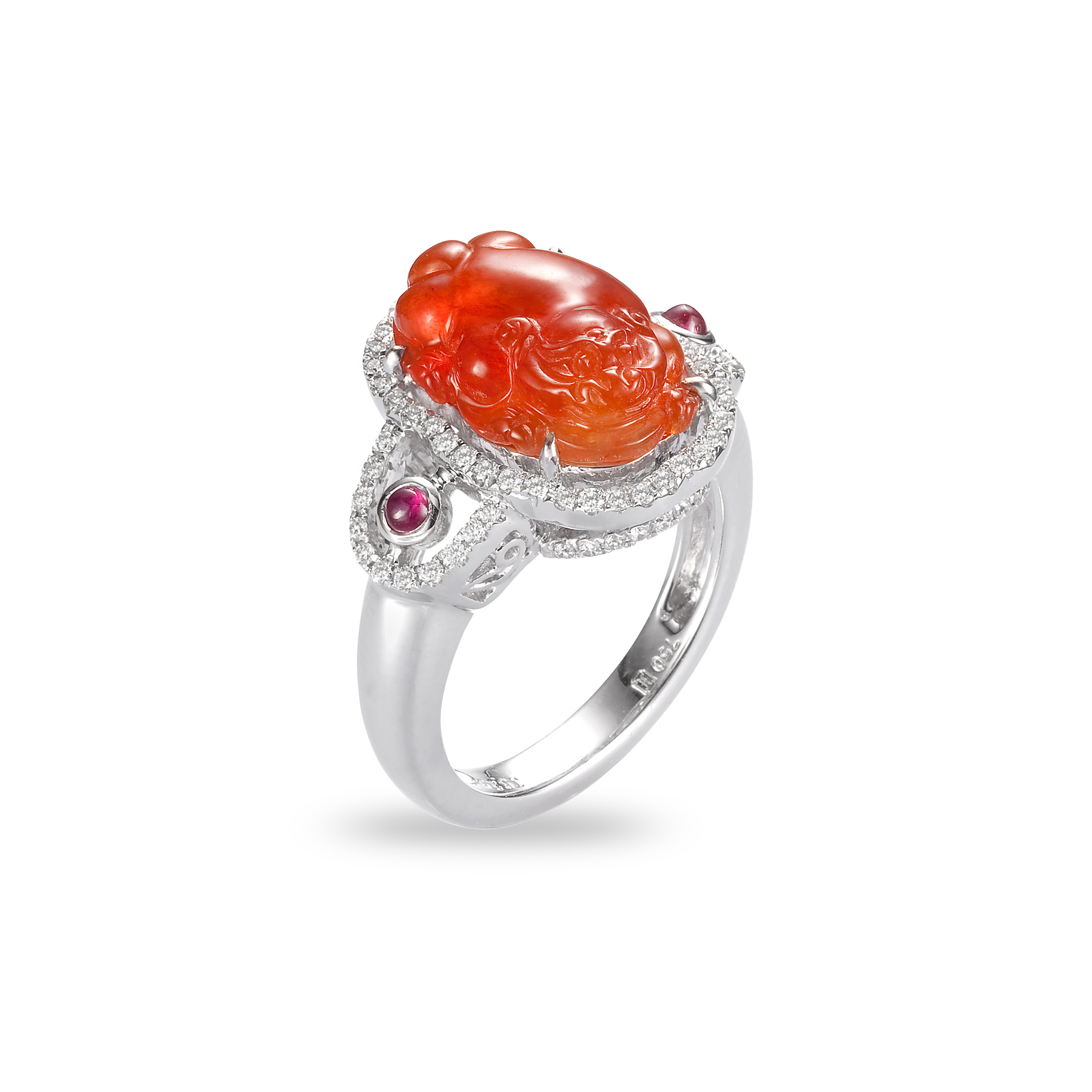 貔貅玉印,印首巧琢靈動造型,端雅風格,既有儒風之韻,亦含藏著祥瑞福祿的祝福;而紅翡貔貅戒指,則以鴻運喜氣的玉色,表現神獸的尊榮氣勢,巧藝與美意,聚合於指間,時刻召喚一切吉事佳緣。
