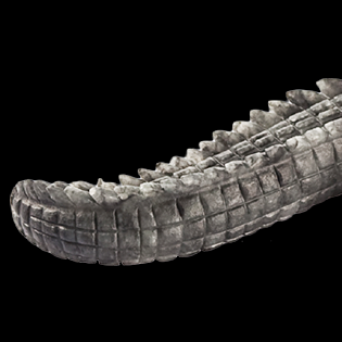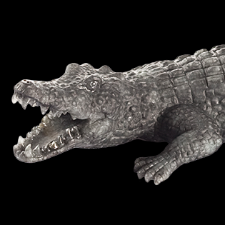 墨玉質色,深藏時間的力道,隱隱內斂著沉練之美。巧琢為鱷,吻長齒銳,足爪有力,鱗甲 的刻劃,尤為細膩。玉鱷一身,宛如披掛甲冑,對決之間,或也能召喚出觀者心內一股迅捷、勇猛的鬥志!