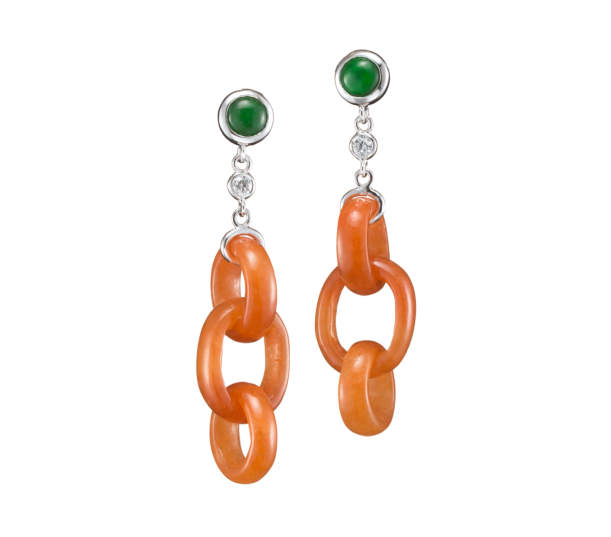 【清韻】系列,以翡翠為主石,將其琢製為交串的玉環,有雙環,亦有三環,造型既古典又俏麗,顏色選擇多樣,包括綠翠、紅翡、黃翡、白翡、紫羅蘭翡翠等等,各有不同的性格氣韻。此系列款式,有墜飾與耳環兩種,耳環的款式,又分為耳夾款、耳勾款與耳扣款,滿足消費者不同的配戴需求。