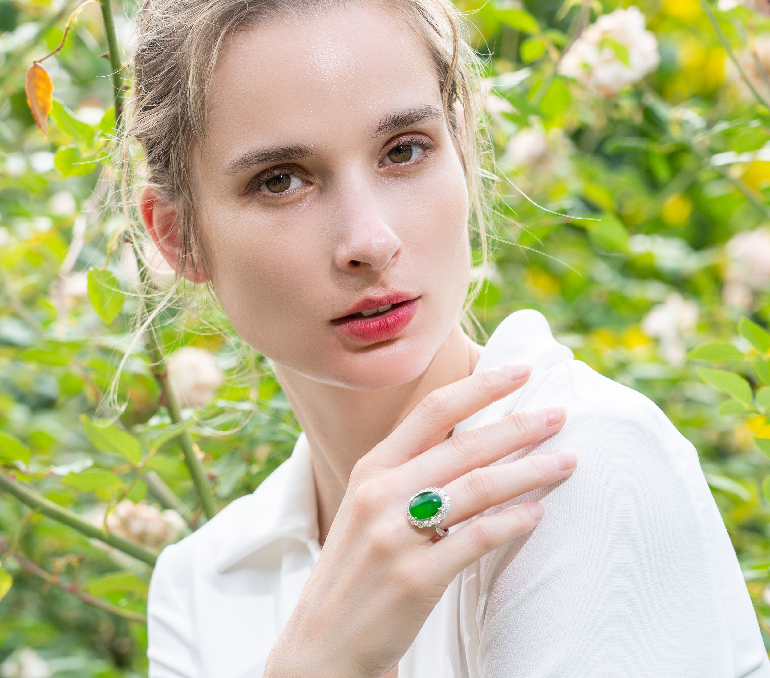 翡翠,是來自大地造化的禮物,透過作玉者的慧眼與巧心,結合細膩的珠寶工藝,終能在纖纖玉指間成就為永恆的美麗,這也正是極品蛋面翡翠戒指之所以在各大國際拍賣會場上屢屢拍出高價、備受珠寶藏家青睞的緣故。
