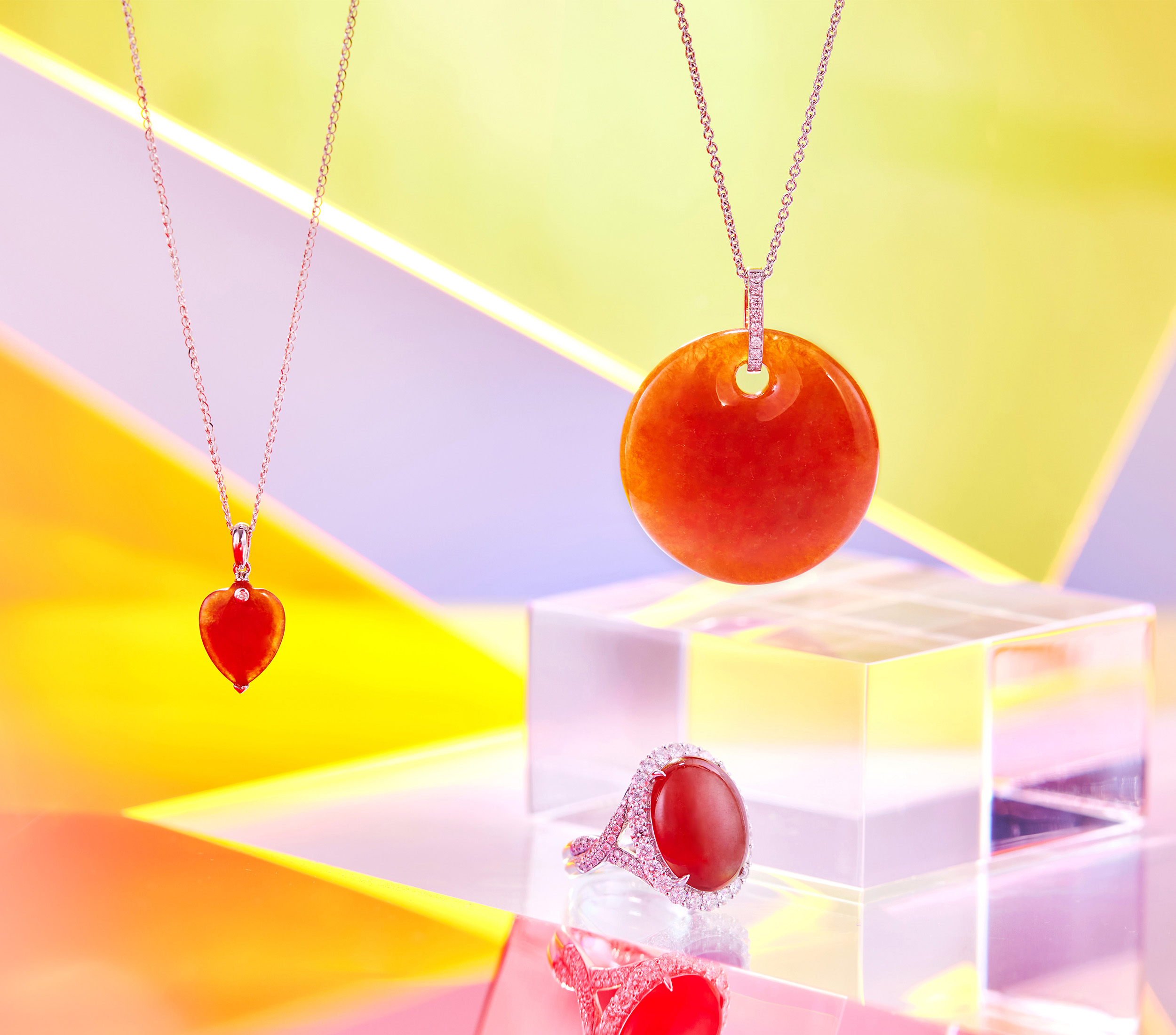 紅色翡翠,象徵熱情、愛戀、喜事與鴻運,總是捎來歡悅和希望。值此夏日時刻,JADEGIA玉世家推出紅翡珠寶系列,以濃烈嬌美之姿,呼應日光朗朗,一展美麗的溫度。