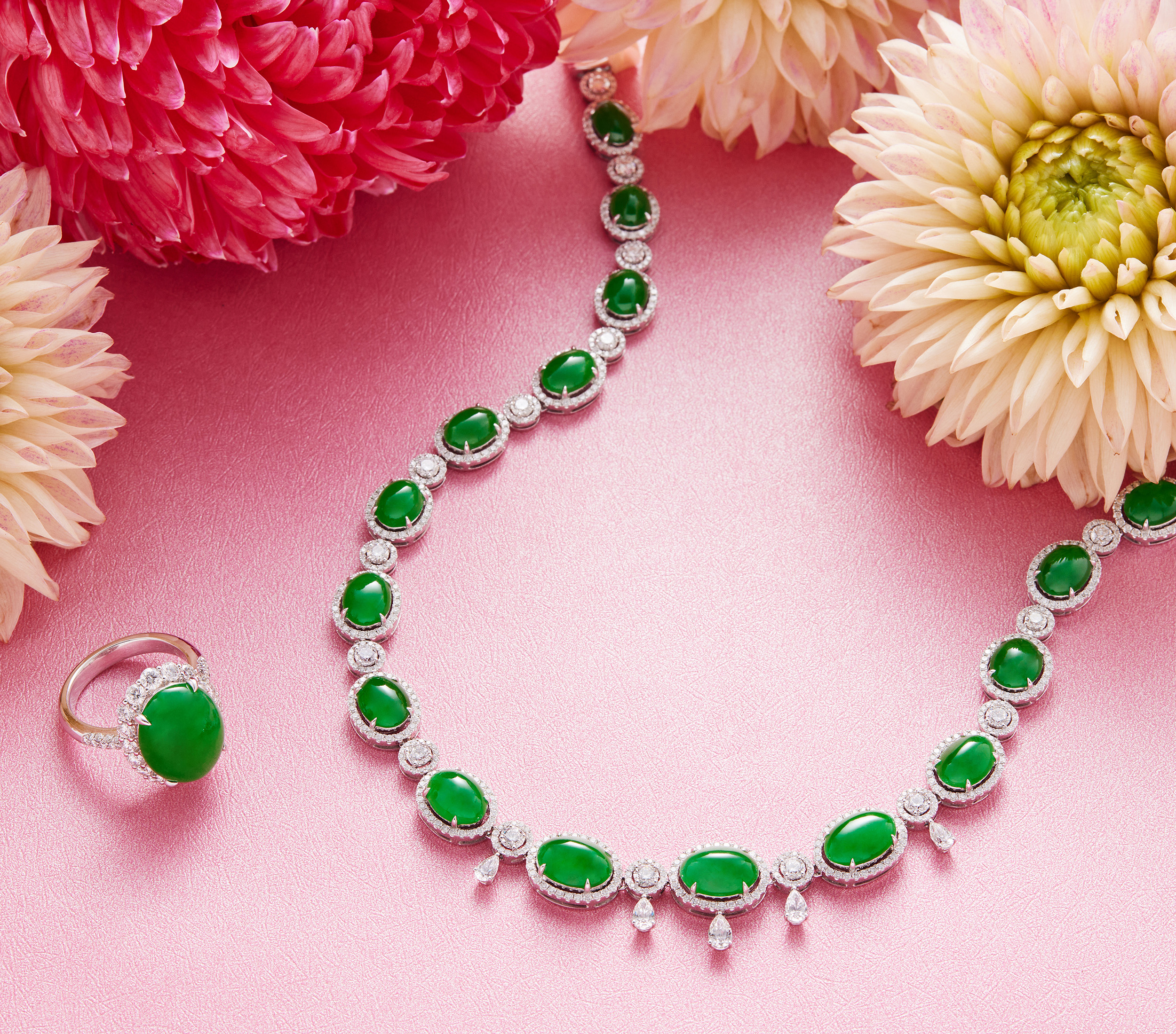 經典款翡翠鑲鑽套鍊 歌詠深情與偉大