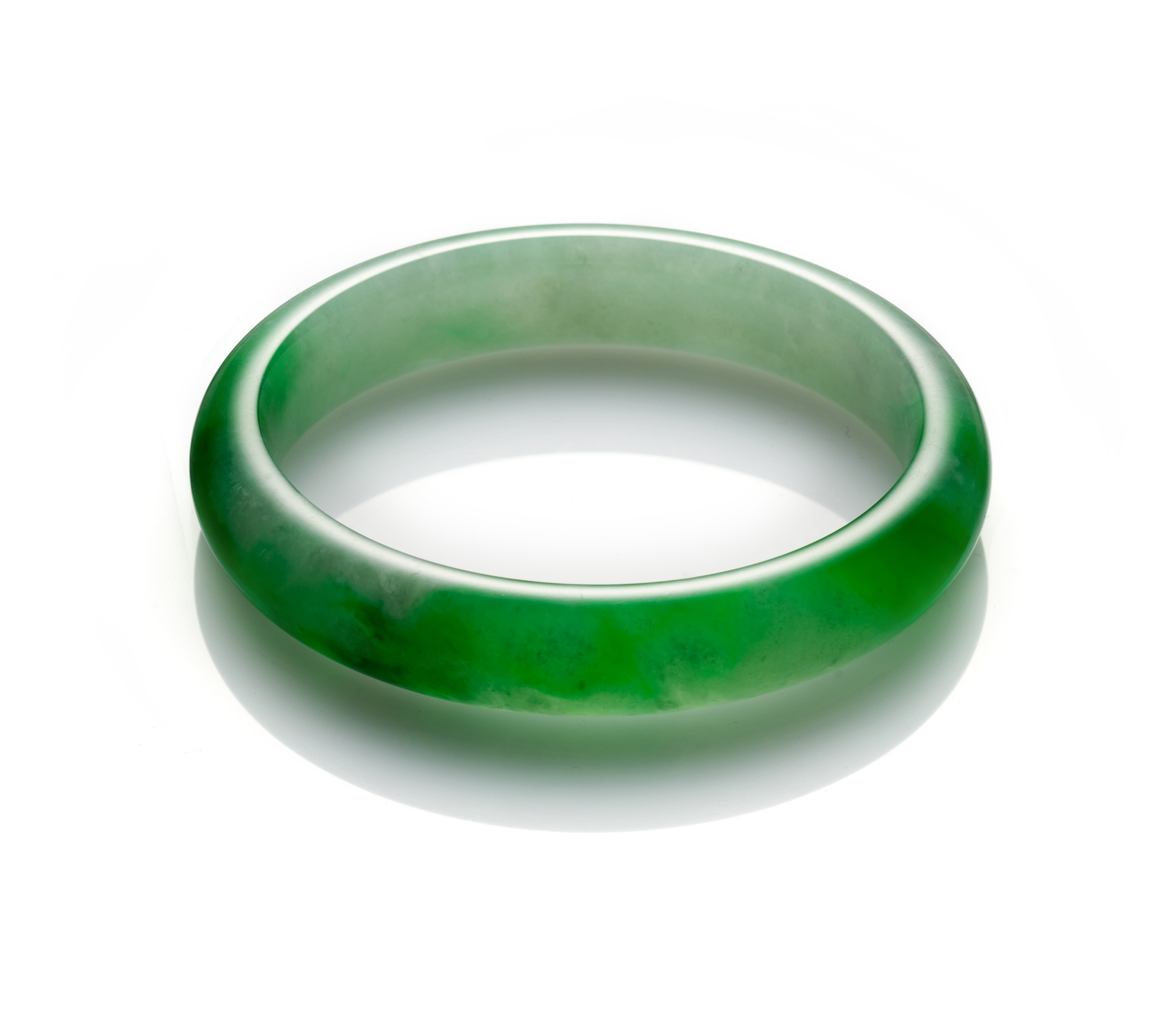 翡翠玉鐲的經典之處,除了質色的優異,更在於蘊含其中的情意。鐲的造型,圓圓滿滿,象徵完足與團圓,最能寄託人間的幸福;再者,玉鐲亦有它的「傳承」意義,在家族的傳世信物中,幾乎都有它的形影,尤其是母親與女兒或媳婦之間,一只玉鐲,傳遞的是親緣間的深厚記憶與情感。另外,因為玉文化的影響,人們普遍認為,配戴玉鐲,別有一番平靜祥和之氣,它的儒雅靜好,散發著特別高貴的內涵與氣質。