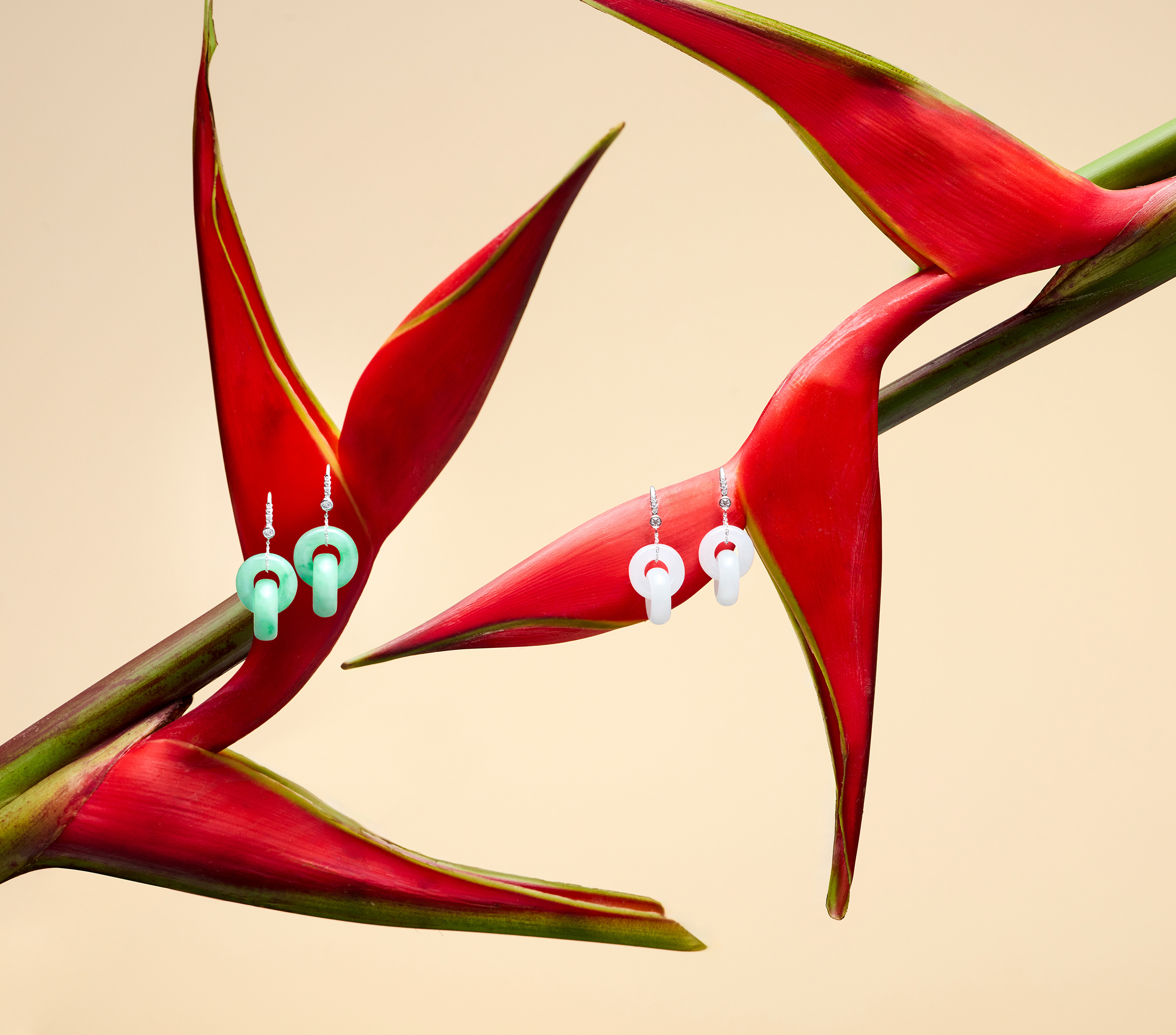 此系列翡翠耳墜,質地潤澤,色系多樣,造型簡練,適合百變穿搭,清靈的時尚設計感,妝點耳畔,迎風輕搖,散發脫俗的優雅品味,自用或送禮皆相宜,亦是寄寓祝福的美麗信物。