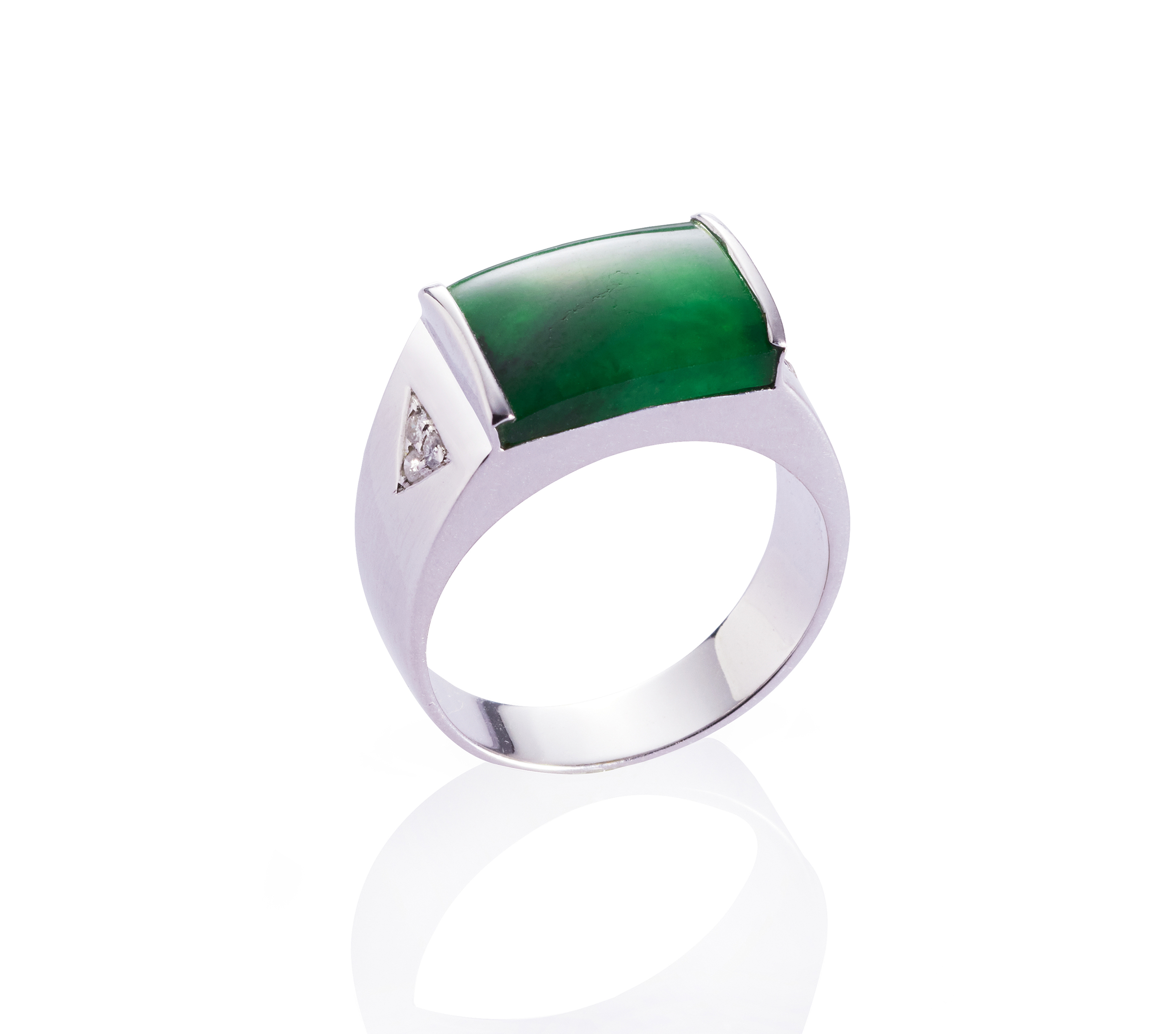 JADEGIA玉世家推出翡翠寬戒新品系列,以綠色翡翠為主石,幾何造型的切割表現,端雅又俐落,寬版的戒身設計,展現大美與大器,再襯以DEF等級的鑽飾搭配,比例合宜合度,風格簡練,尤能詮釋一種難以言喻的內斂與智慧。