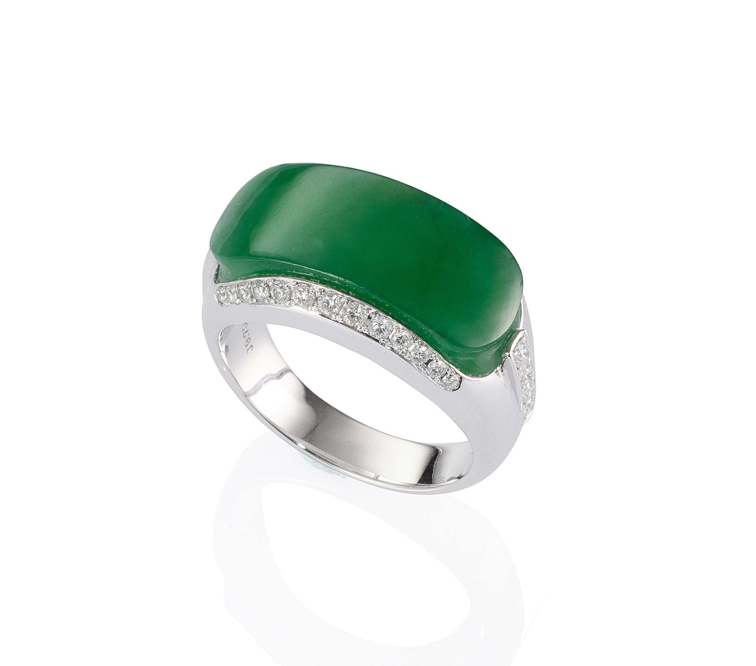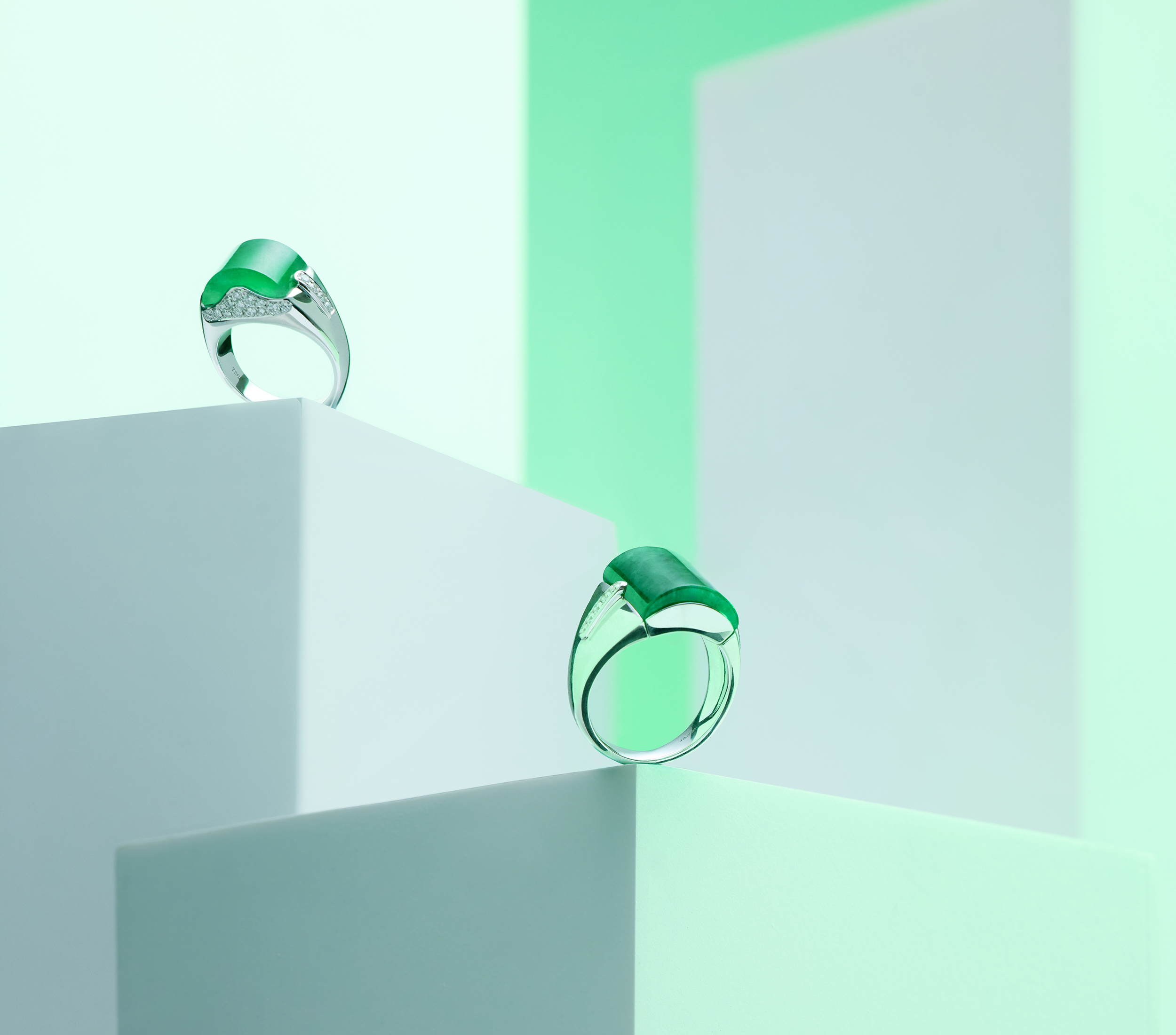 此系列寬版戒指,既有都會時尚的現代感,盎然綠意,捎來朗朗清新的氣息,主石的形制,亦含蘊東方情味,鞍形、橋拱乃至方長造型,特別能引人感受時代的氛圍,那種深深長長、溫厚又儒雅的經典風範。