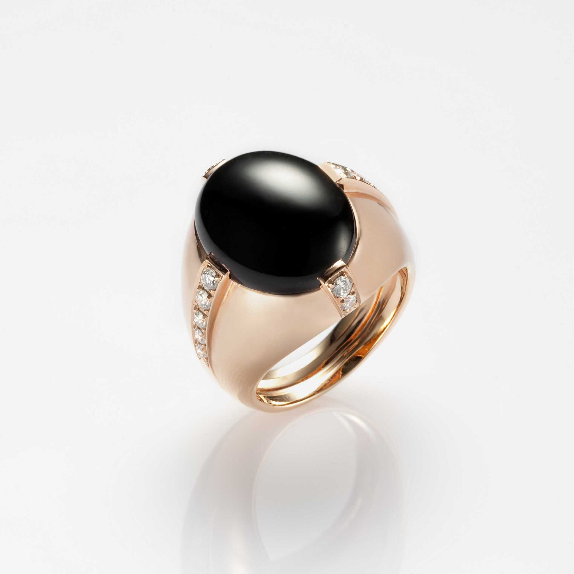 黑白雙戒,以飽滿的蛋面形制,搭配精緻的戒台設計工藝,不論主石與戒身的比例,亦或是鑽石、紅寶的嵌飾,皆能窺得其中的經典風采與細膩時尚氣味。