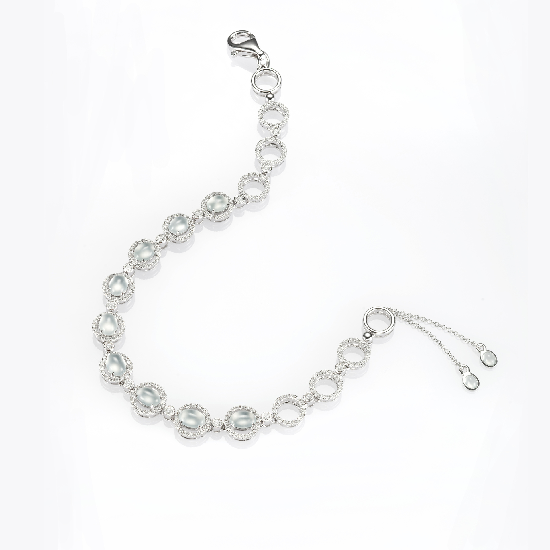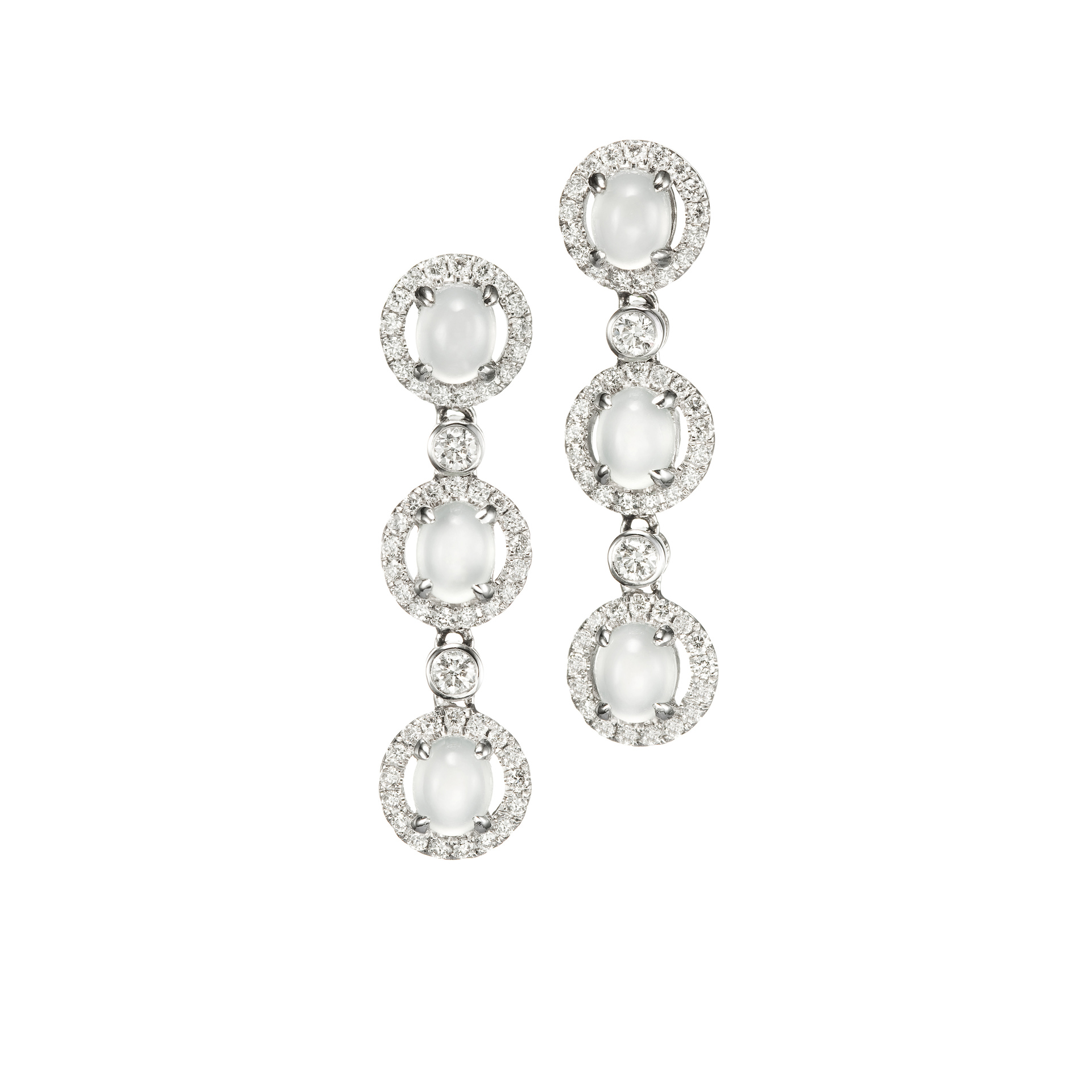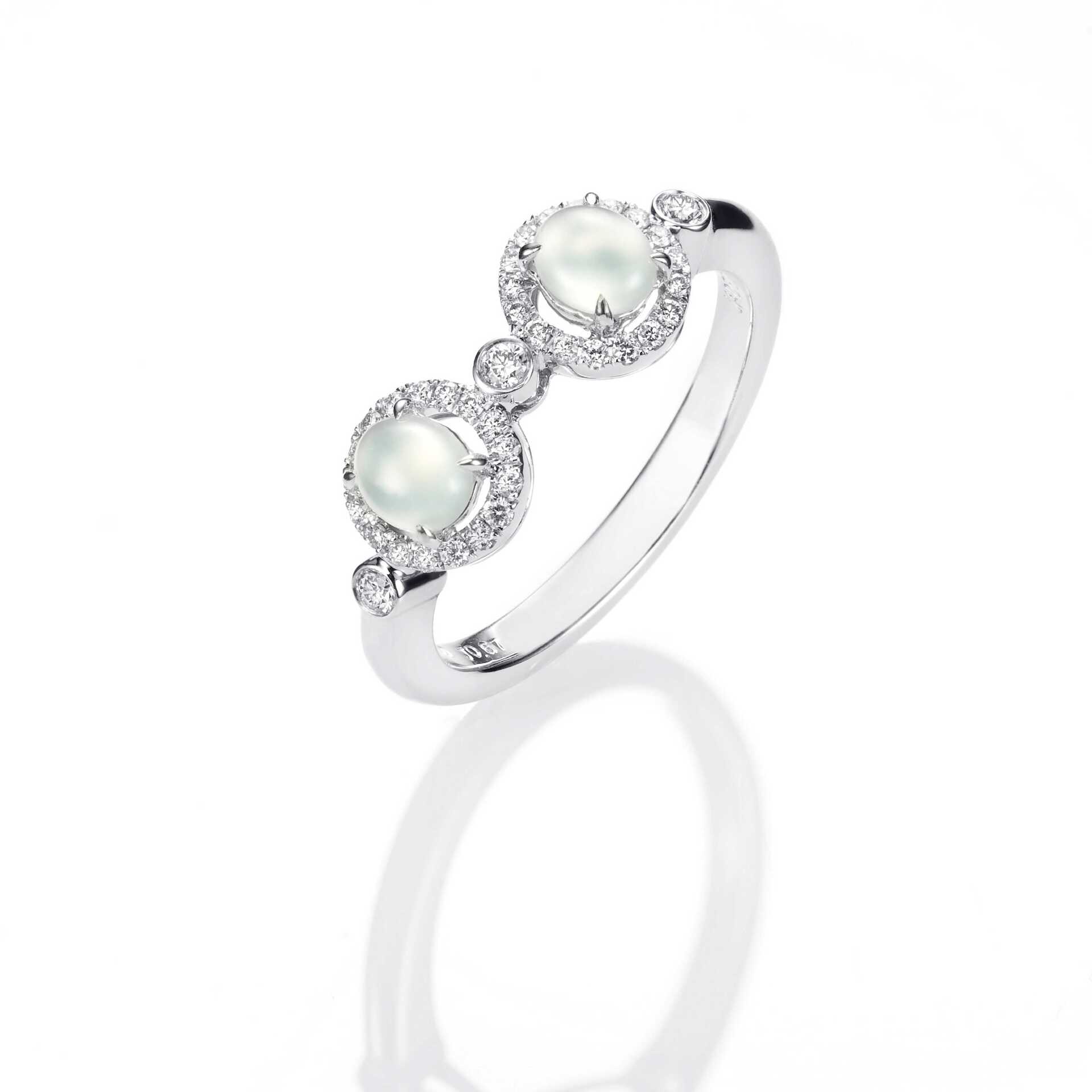 【雪燦】系列,以蛋面白翡為主石,澄澈光潔的玉質,映出如雪明淨,輔以簡練的鑽飾鑲嵌,最能襯托白翡之美,亦同時延伸了雪之光華,在玲瓏輕盈的設計裡,述說了秀靜,也點染著俏麗!