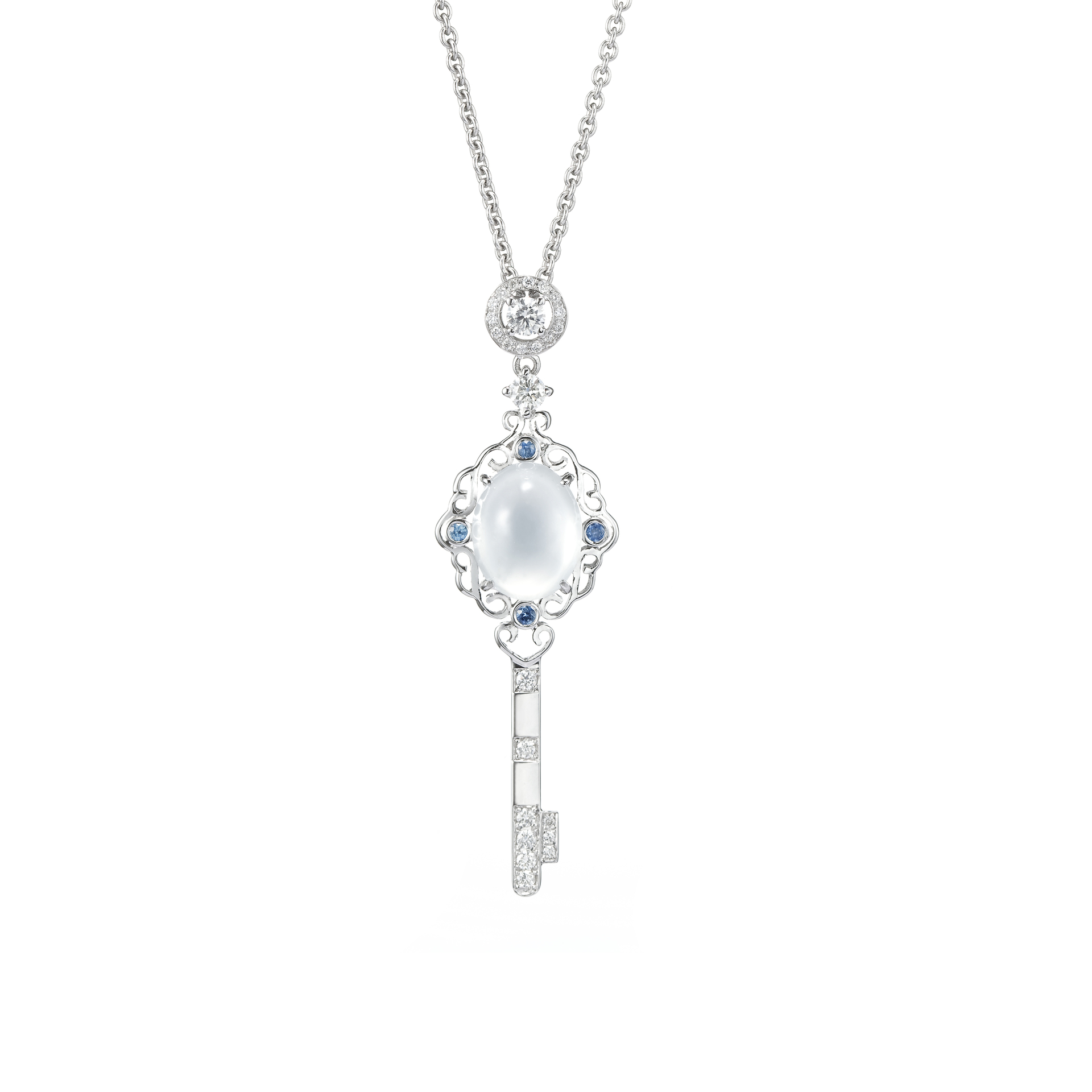 【情鑰】系列,以翡翠為鑰身,或綠翠或白翡或紅翡,或心形或蛋面或古錢造形,溫潤且堅韌的翡翠質地,寓示著愛的柔情與堅亮,而瑰彩的玉色,則揭示了愛裡的節奏,可以靜謐,也可以熱情!同時,更輔以燦眼鑽飾,輕點幾抹恰到好處的耀目,亦並峙出一襲古典與現代的美感。