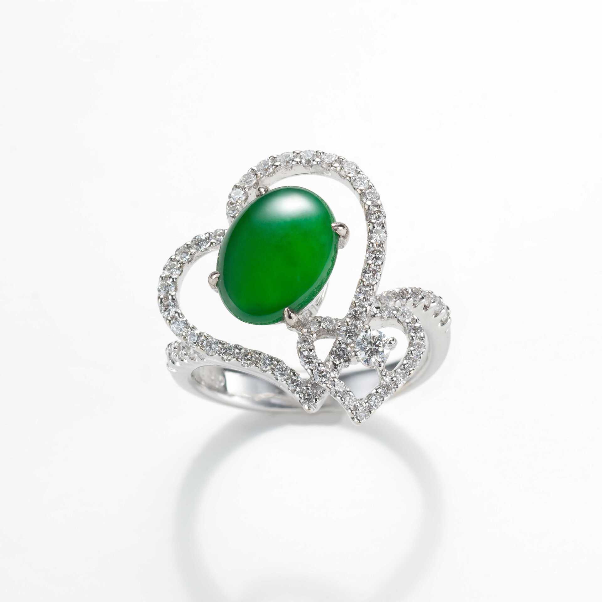 心手相隨:心形翡翠戒指