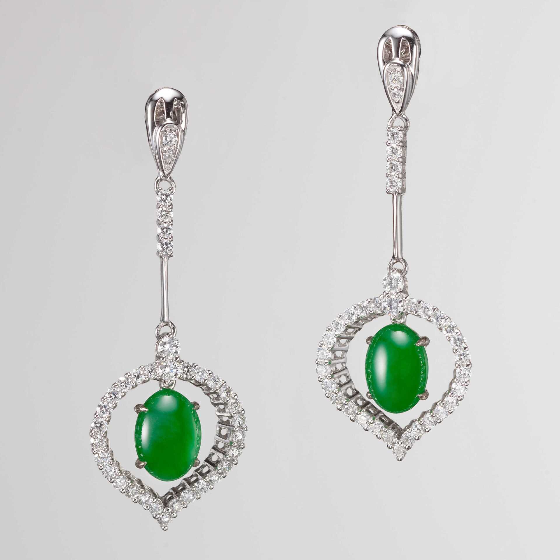 不論是小巧雅致的心形切割冰種翡翠,或是以質地溫潤通透的翡翠搭配K金愛心造型設計,垂掛於耳畔的兩顆心,一左一右彷彿時時縈繞著情人的叮嚀與牽掛,流露百般濃情密意。