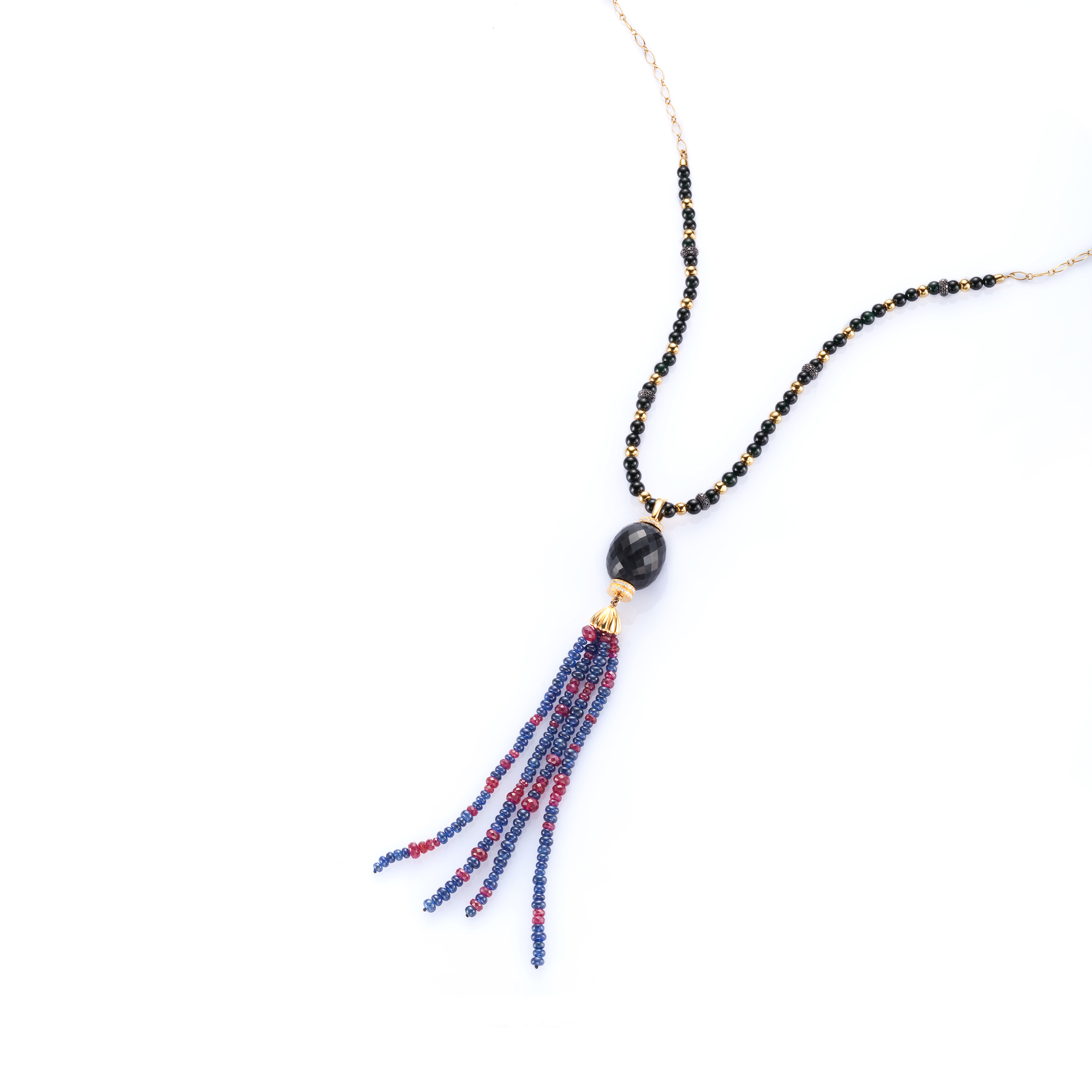 2016春夏波希米亞風格持續席捲,不僅代表著一種自由灑脫、熱情奔放的態度,更是不受傳統準則規範的藝術精神。呼應伸展台的時尚主題,JADEGIA玉世家特別推薦一套波希米亞風格的翡翠珠寶,運用黑色墨玉結合貴重的紅藍寶石與黃K金,以層叠、流蘇、珠串…等元素,展現女性浪漫而隨興不羈的時尚態度,全然跳脫翡翠以往講求典雅氣質的設計形式。