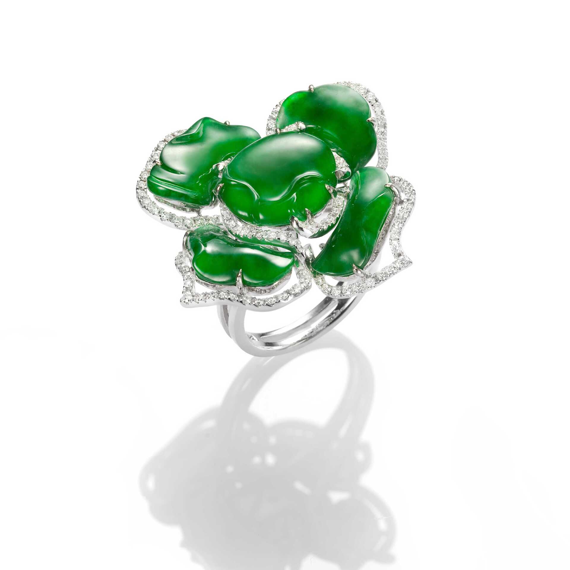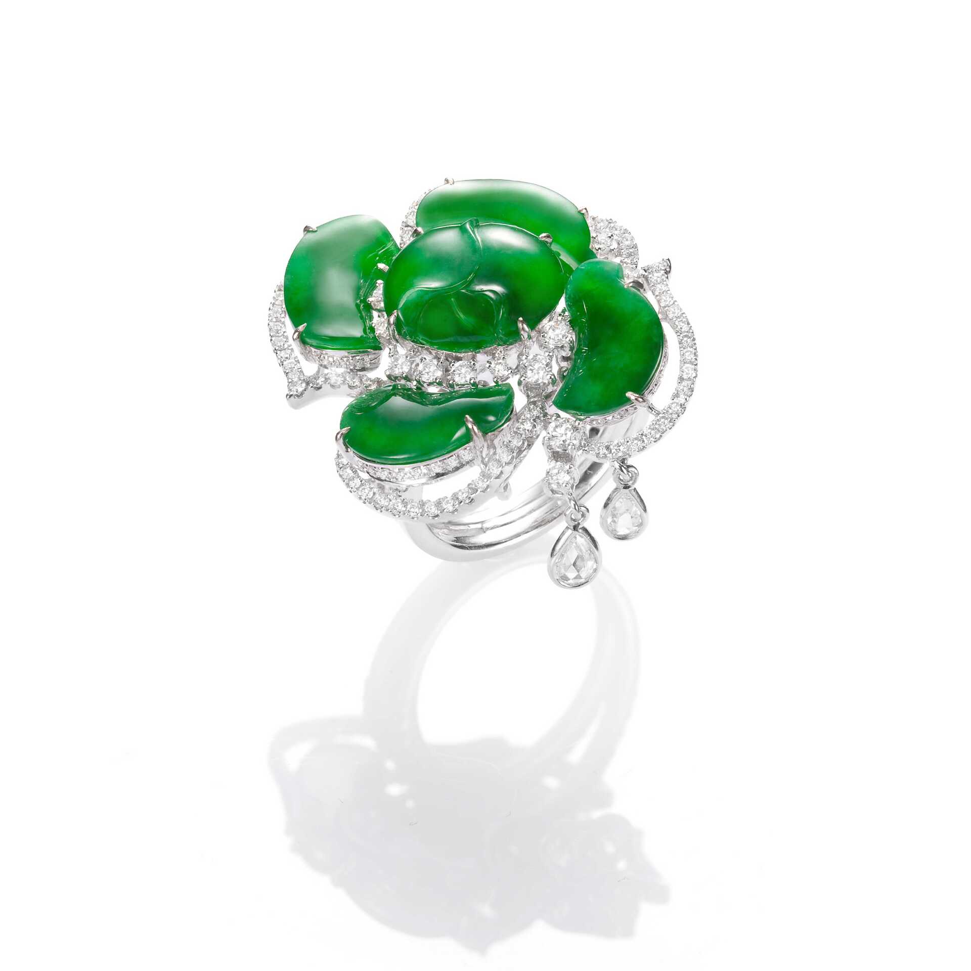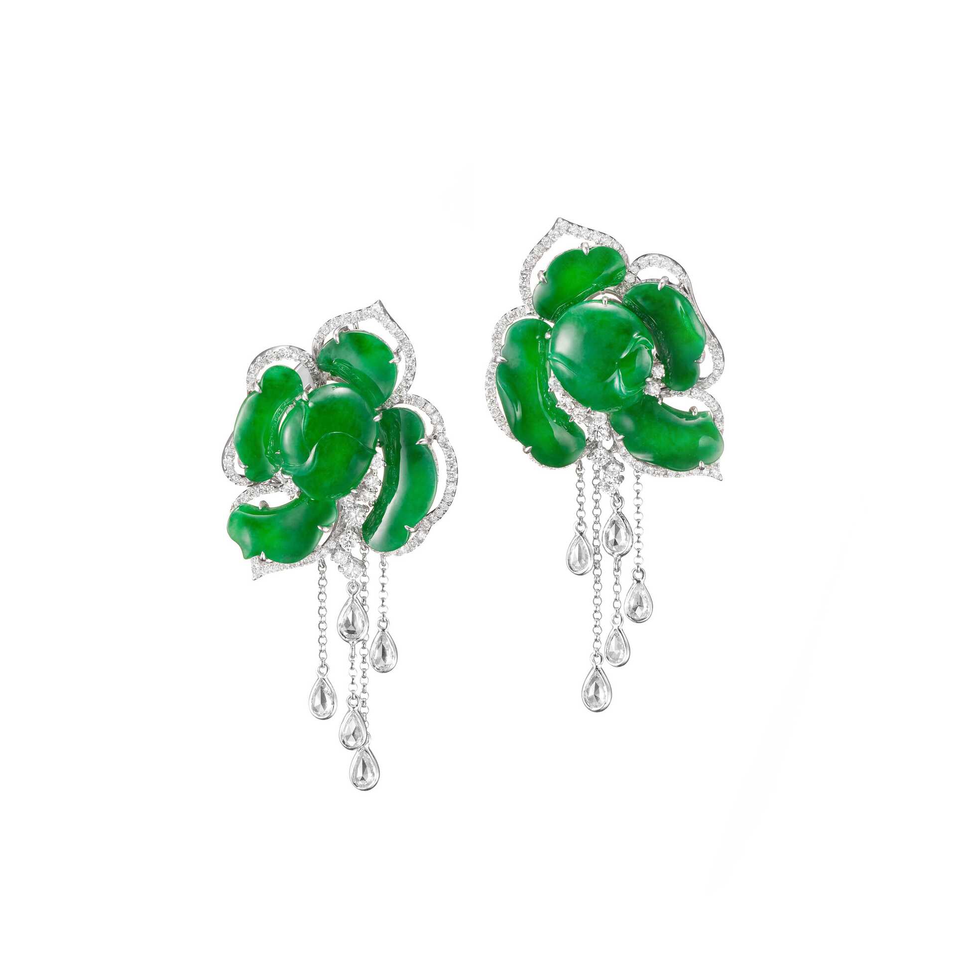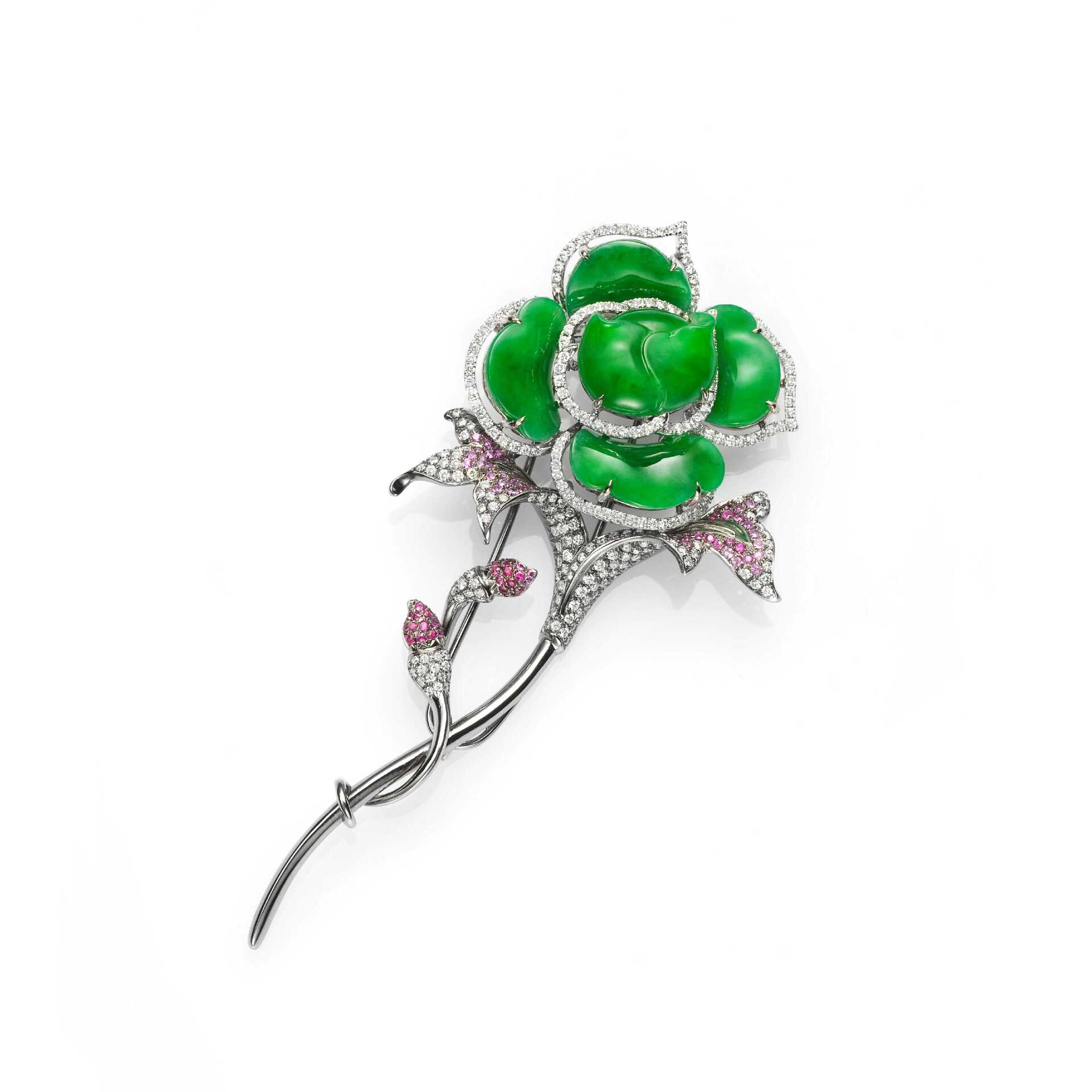 【Rose's Secret玫瑰的秘密】系列,以翡翠鑲嵌出「玫瑰」造型為主題,創作一系列手環、戒指、耳墜、胸針等珠寶作品。翡翠質色,溫雅青碧,盈盈可人,花瓣形制,巧妙融入了經典圖紋的「如意」造型,流露東方意蘊,再透過簡潔的設計手法,輔以璀璨亮鑽,或紅寶石點綴,勾勒為沉穩內斂而又不失低調華麗的綽約風姿,細細打造出交融著東方與西方經典美學氣韻的優雅珠寶,於玫瑰盛綻之際傳遞對母親滿滿的愛意與祝福。