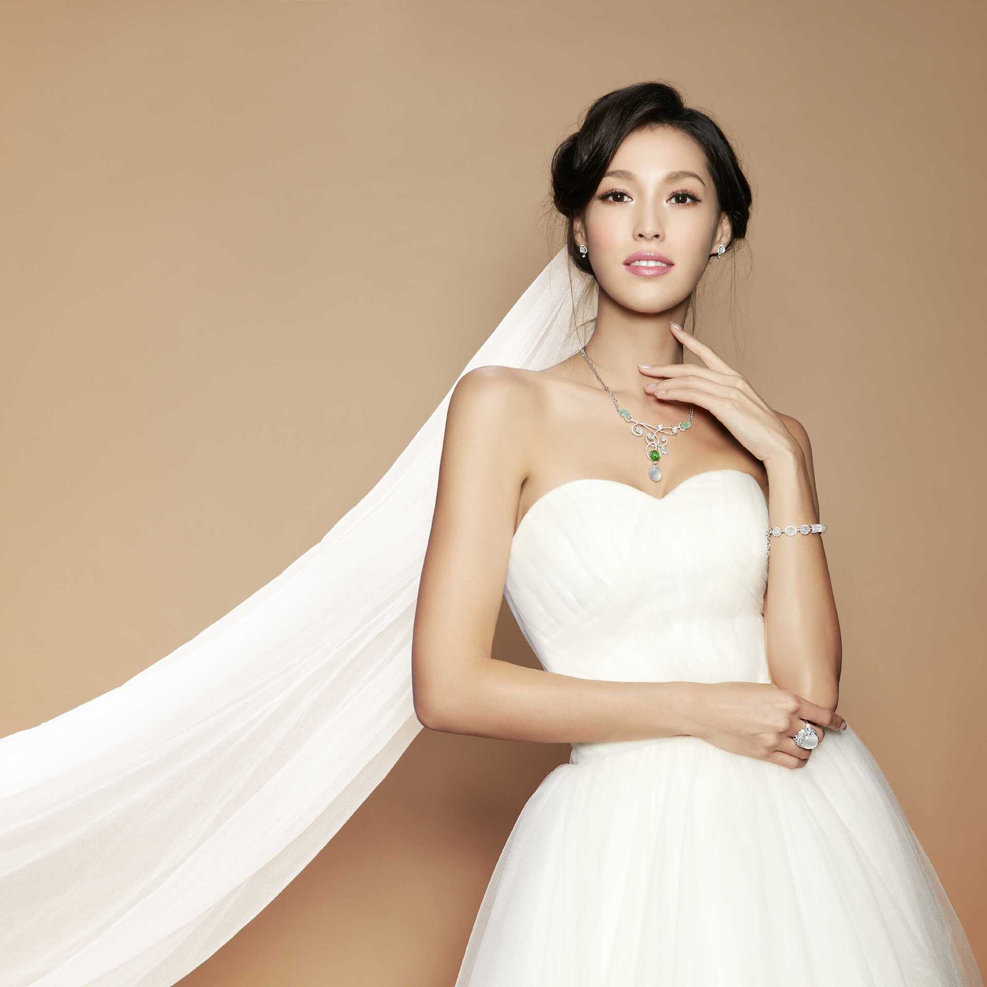 東方新娘,就該有東方美學的主張。在人生最重大的時刻裡,翡翠,永遠是獨一無二的經典首選。有溫柔堅韌的本質,有深蘊的人文內涵,有總也不膩的韻致魅力,是最能貼近心頭溫度的珠寶,也最能詮釋愛裡的承諾。如此初心的溫暖,如此情深的恆久,如此柔靜的氣質,其中又以似雪純潔的「白翡」,最能象徵「永恆」。