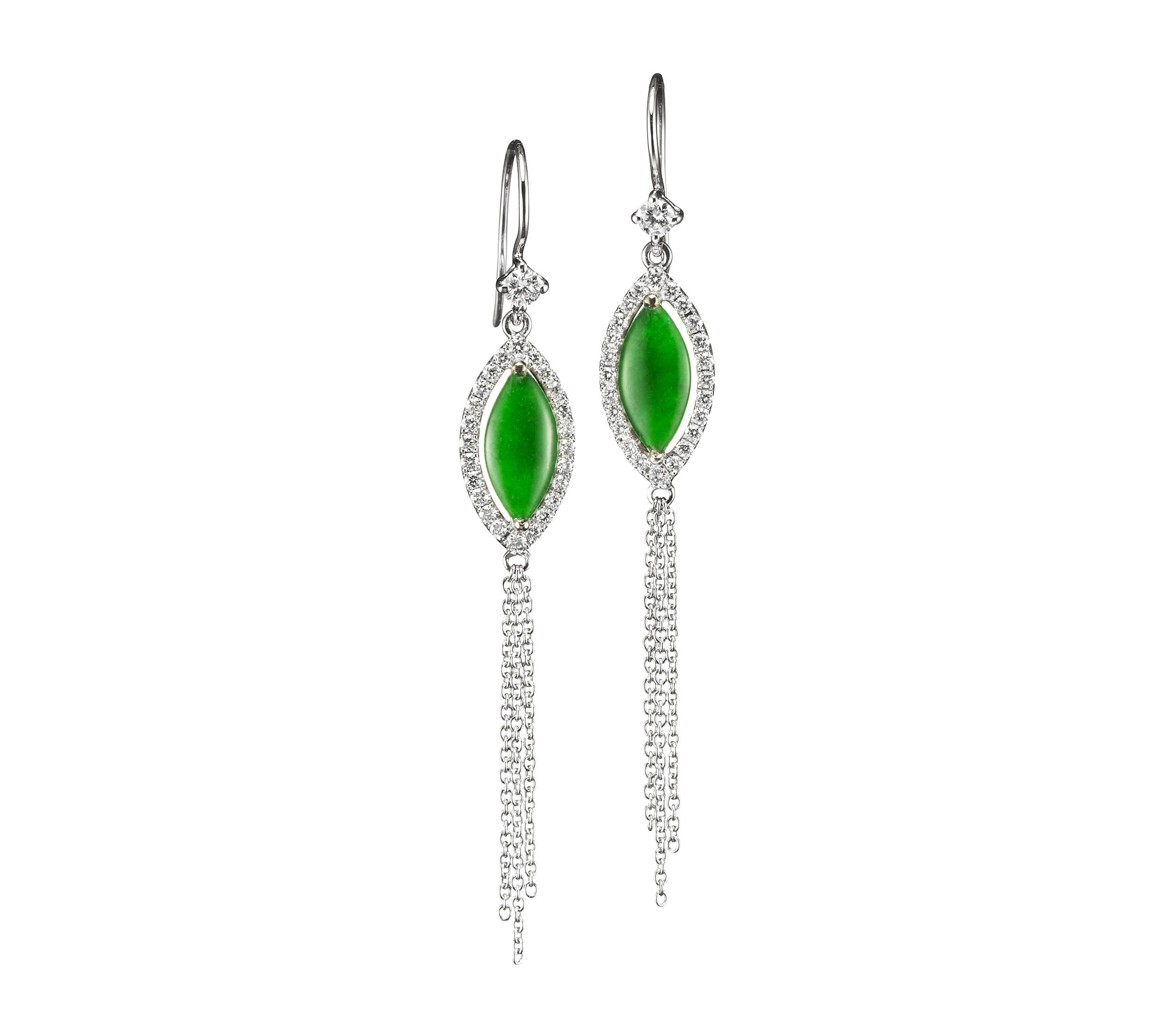 JADEGIA玉世家2020春季珠寶系列,以「風動」為題,將馬眼形翡翠融入珠寶設計之中。宛如青嫩綠葉的主石造型,無論是不同比例主石的層層嵌接,抑或是單一主石搭配璀亮鑽石、流蘇墜飾的視覺呈現,再再都詮釋出了春天的豐盈氣息,點染著生命力的美麗能量。