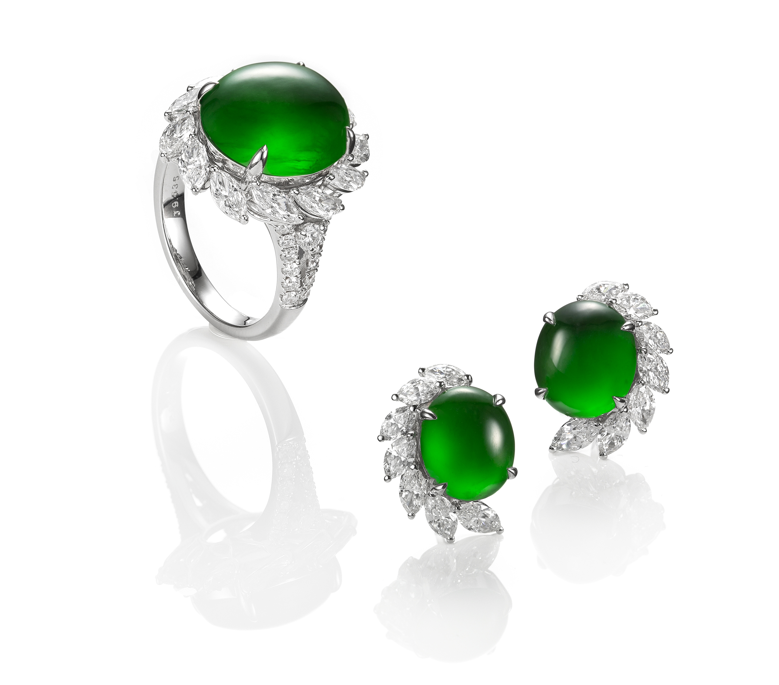 系列款式,以戒指、耳環為主,翡翠的內蘊光芒,在鑽石的映襯之間,展露無與倫比的深刻魅力。