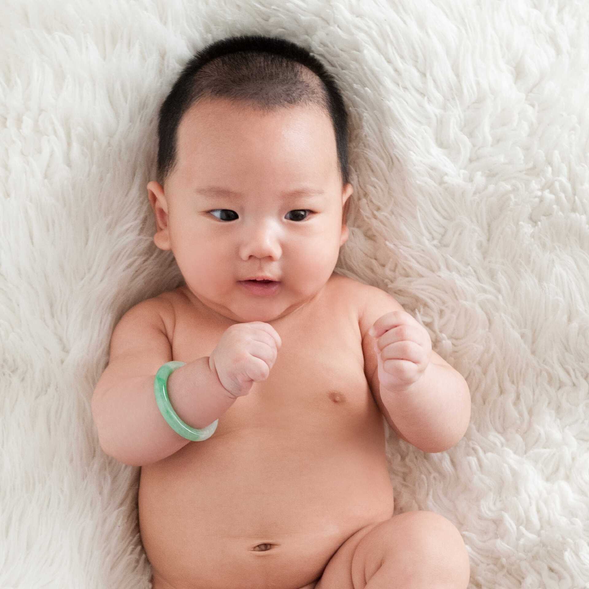 「Baby J」系列迷你翡翠小鐲,專為新生寶貝設計,待孩子長大之後,可將小鐲搭配長鍊作為墜飾使用,或成對購買將來作為耳環配戴。無論贈禮或自家傳承,在黃金價格飆漲、五花八門酷炫小物充斥的世代裡,人文溫潤的翡翠,有著文化韻致的底蘊及美學經濟的未來性,無疑是送給純淨小生命的最佳選擇!