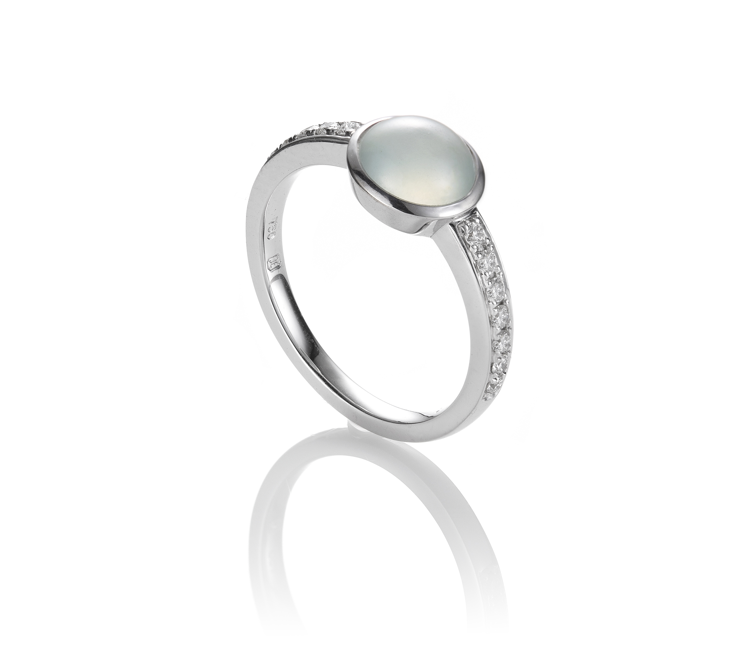 此款春夏珠寶系列,以項鍊、戒指為主,嚴選溫潤質優的翡翠主石,綠色翡翠朝氣煥然,醞釀著蓬勃生命力,白色翡翠瑩透澄淨,予人舒朗清新之美;主石均採蛋面切割,盡顯玉色光華,設計的調性取捨,以簡約俐落為原則,單純的綠,單純的白,間或些許鑽飾點襯,勾勒一襲返樸歸真的氣息。