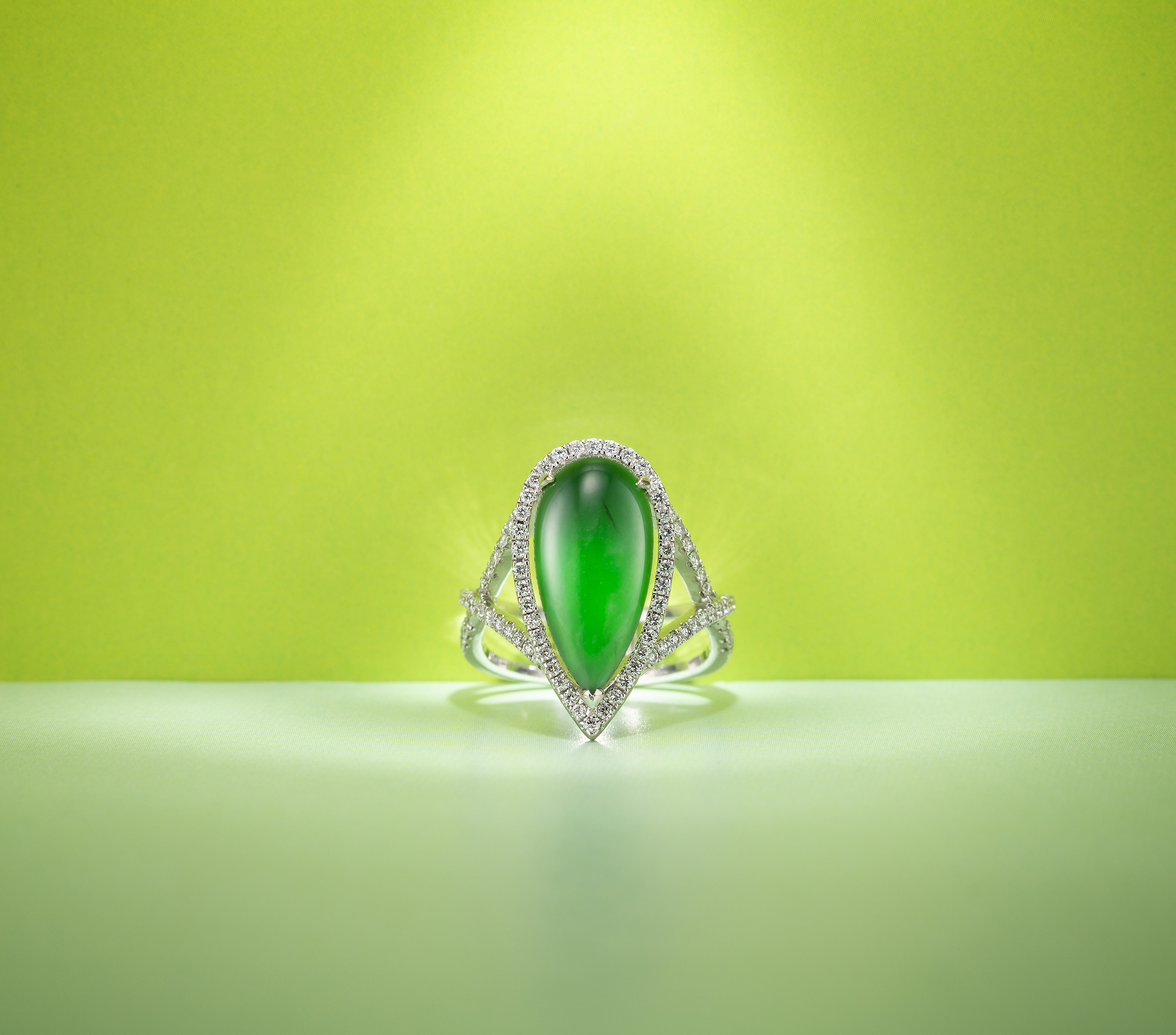 JADEGIA玉世家蛋面翡翠戒指【翠漣映】