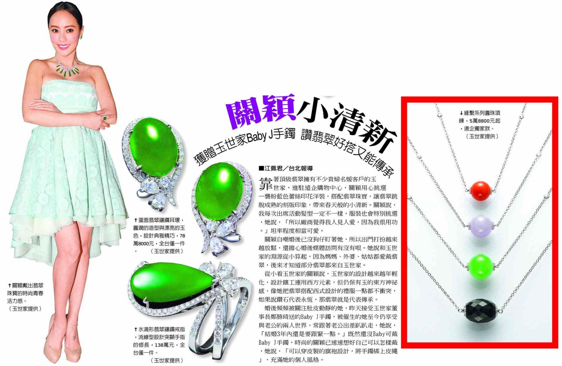 關穎小清新 獲贈玉世家BABY J手鐲 讚翡翠好搭又能傳承