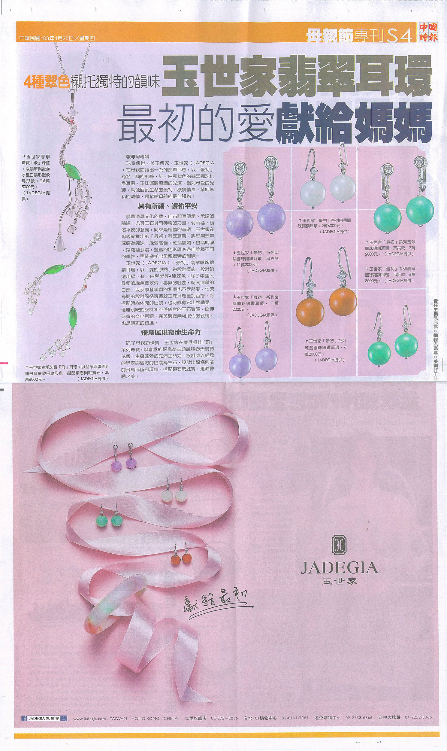2019-04-25 JADEGIA’s jade earrings – The origin love for Mother’s day玉世家翡翠耳環 最初的愛獻給媽媽