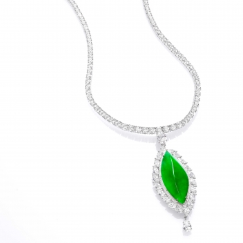 春意盎然的午後時光,伴隨著柔和愜意的悠然豎琴樂音,一場別俱人文氣息的珠寶饗宴正拉開序幕。婚後定居新加坡的玉女天后楊采妮,身著一襲純白色長禮服翩然步入會場,展現自信高雅的女神風采;頸上配戴JADEGIA玉世家頂級珠寶系列馬眼形翡翠鑲鑽墜飾,玉色艷綠清透,如優雅身形曲線般的獨特韻味,在璀璨鑽石烘托之下,彷彿一件令人詠嘆的藝術臻品。搭配同系列馬眼形翡翠鑲鑽戒指與懷古系列翡翠鑲鑽耳環,總價值近新台幣五千萬元。而楊采妮此次穿著的禮服是由兩岸知名服裝設計師潘怡良量身打造,一亮相便驚艷全場。