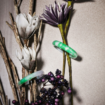 鐲子畫了一個圓,用最簡單的線條代表了圓圓滿滿。翡翠玉質,既堅韌,又溫潤,翠色瑰麗多變,巧琢為手鐲,有自古以來的愛情象徵,有傳承已久的親情依戀,亦有護身庇佑之用,更能襯托出女性由內往外散發的美麗光采。